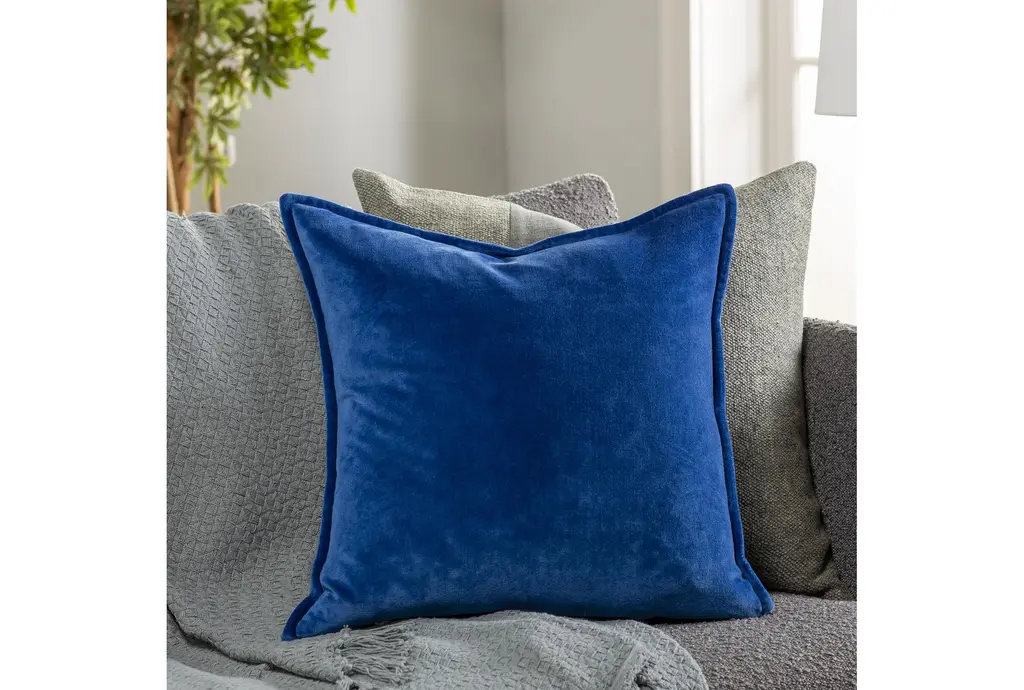 22" X 22" Dark Blue Cotton Velvet Down Fill Accent Pillow By Surya | Machine Washable