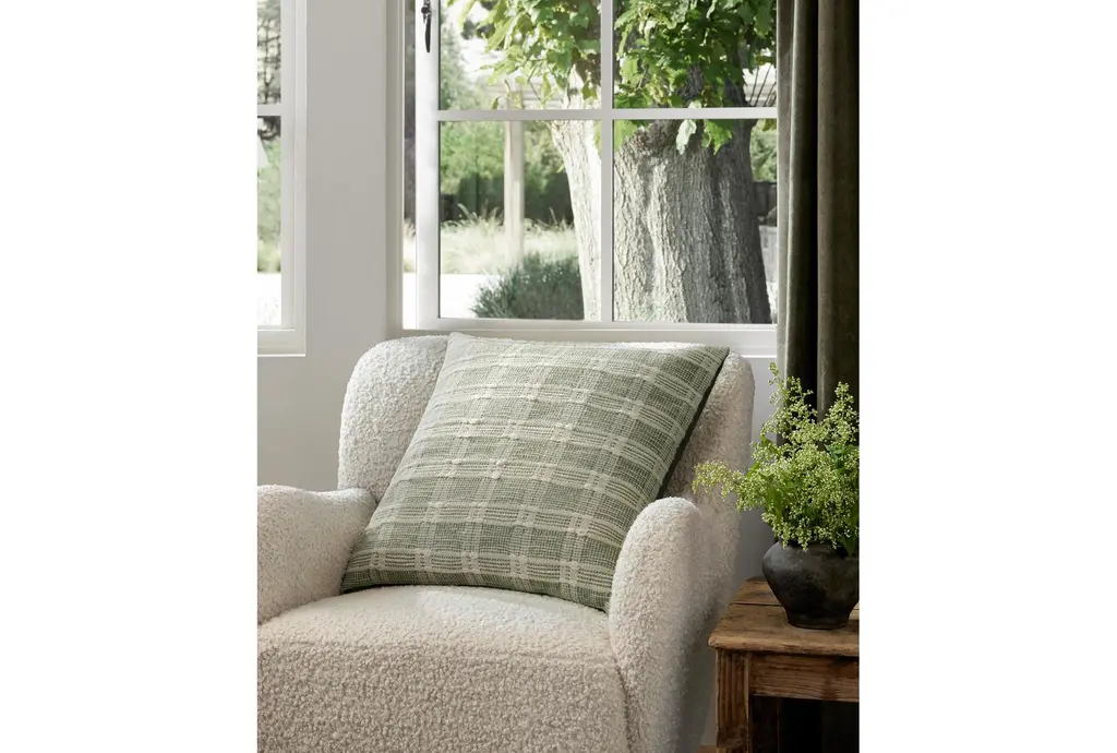 The 22" X 22" Green With Poly Fill Insert Accent Pillow by Amber Lewis X Loloi is a stylish and comfortable addition to any living space. Its green fabric and high-performance material ensure durability and a soft touch. This accent pillow is perfect for adding a touch of elegance to your home decor.