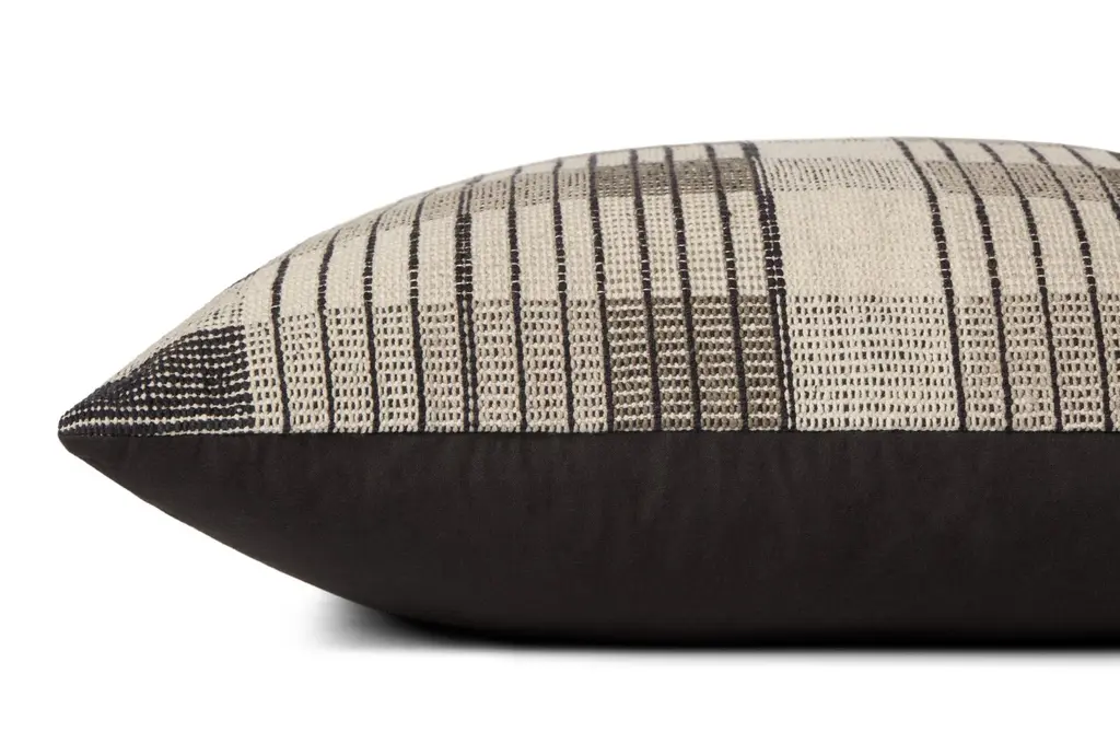 This 22" x 22" Ivory & Black Accent Pillow by Amber Lewis X Loloi is a stylish addition to any living space. Crafted from high-performance fabric, it features a sophisticated design that effortlessly complements various decor styles. The down fill insert ensures maximum comfort and support.