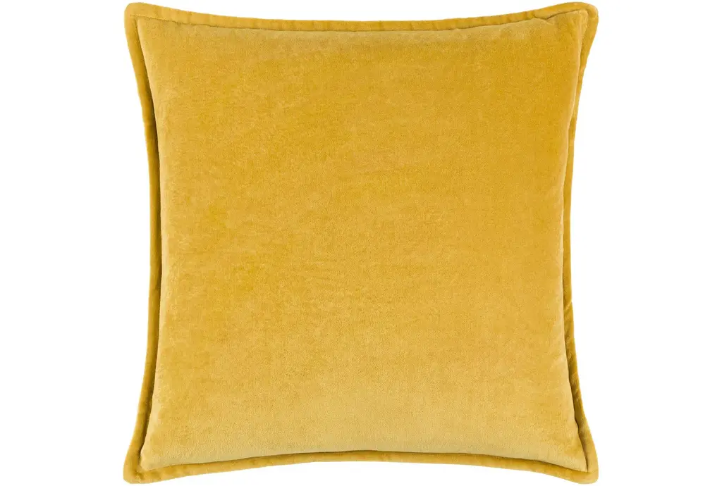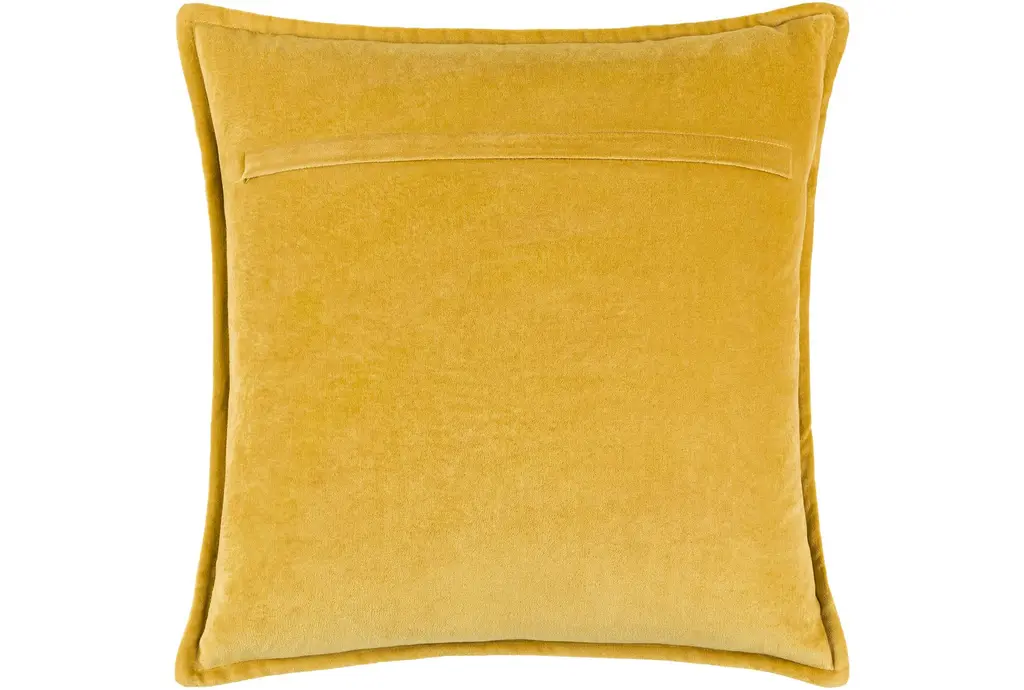 22" X 22" Mustard Yellow Flanged Cotton Velvet Accent Pillow By Surya | Machine Washable