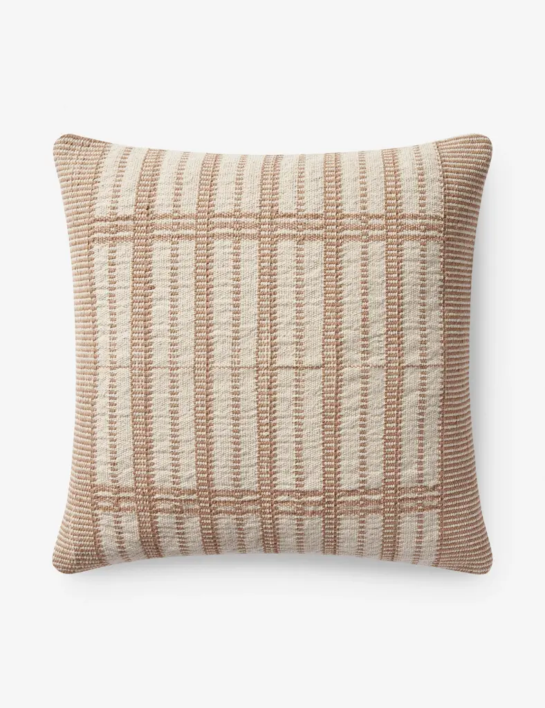 Add a touch of warmth and comfort to your living space with the 22" x 22" Natural & Rust Fabric With Down Fill Insert Accent Pillow by Amber Lewis x Loloi. This cozy, square pillow features a beautiful blend of natural and rust hues, perfect for creating a casual and inviting atmosphere. Its 100% cotton fabric and down fill insert ensure both style and comfort.