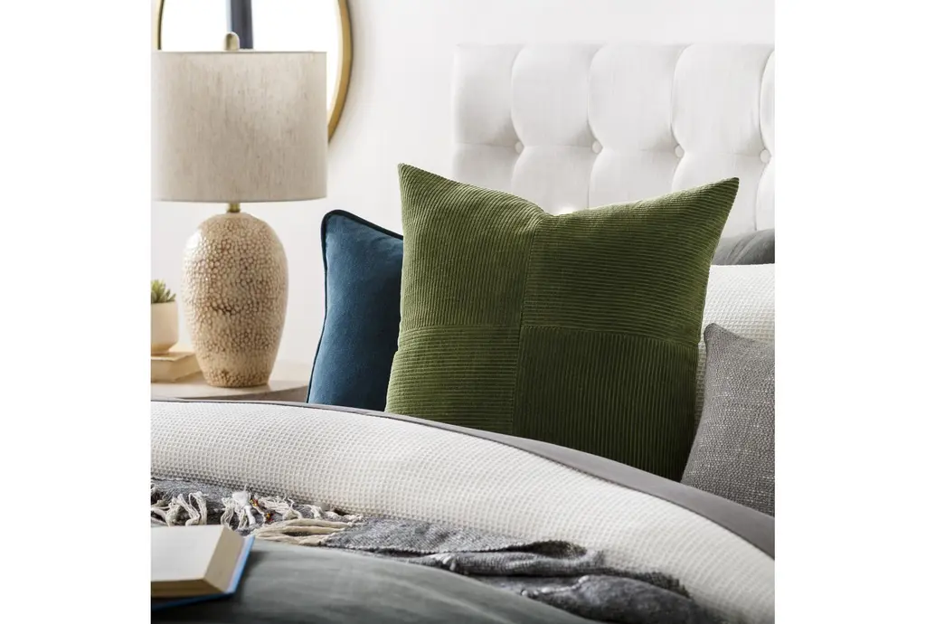 22" X 22" Olive Cotton Corduroy Quarters Down Fill Accent Pillow By Surya | Machine Washable