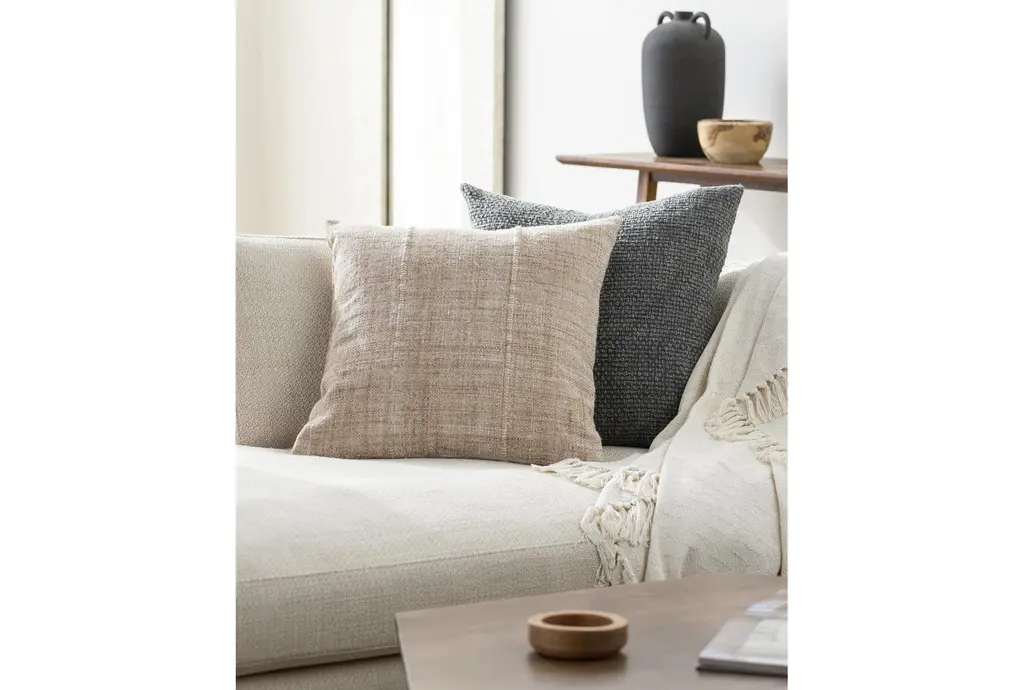 22" X 22" Tan Mudcloth Accent Pillow By Surya pairs a tactile mudcloth surface with everyday durability to create a warm, comfort-forward accent. The cover is 100% cotton with a high performance fabric backing that helps the pillow stand up to regular use while maintaining a soft hand. Sized at 22 by 22 inches, it layers easily on sofas, beds, and chairs to add texture and warmth to a room.