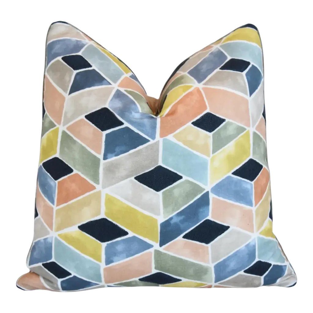 Enhance your living space with the 22X22 Black Teal Yellow Terrazzo Style Throw Pillow. This modern accent piece features a striking terrazzo pattern in black, ivory, tan, teal, and rose, making it a perfect addition to any contemporary or mid-century modern decor. Crafted from 100% cotton, this pillow offers both style and comfort.