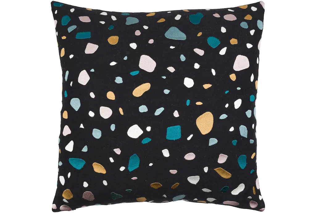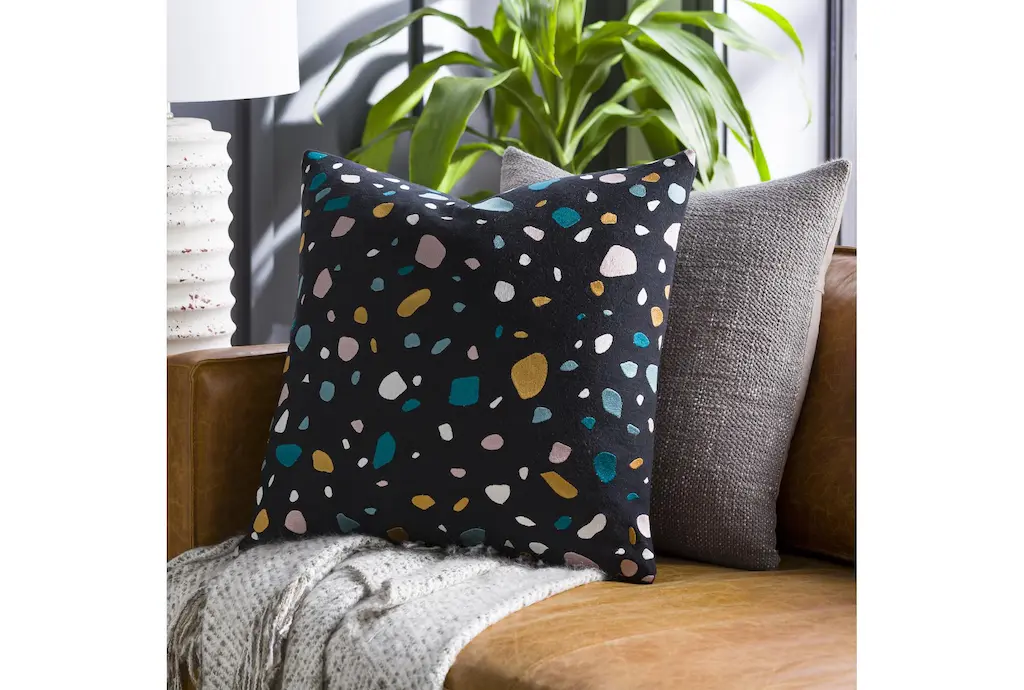 22x22 Black Teal Yellow Terrazzo Style Fabric Throw Pillow By Surya