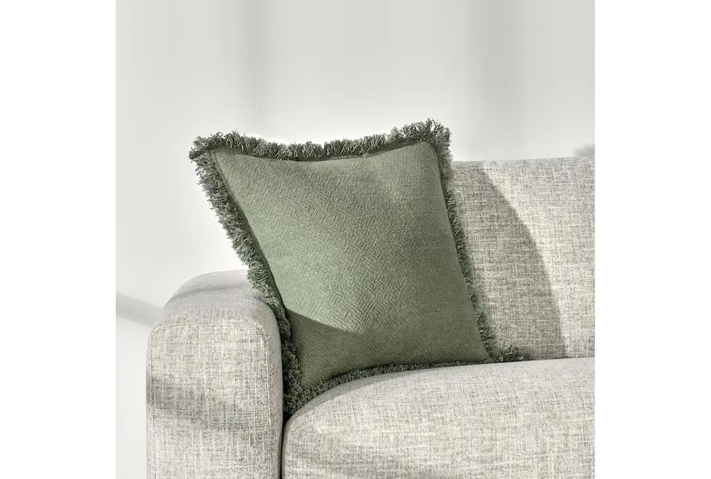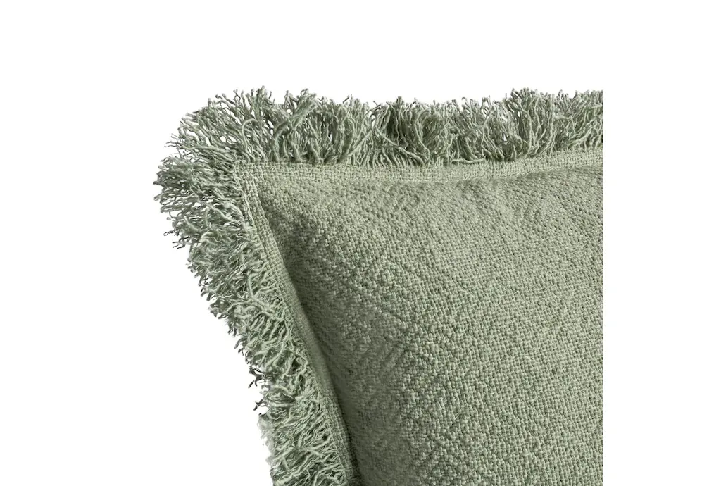 22x22 Cotton Cedar Green Square Frayed Fringe Throw Pillow