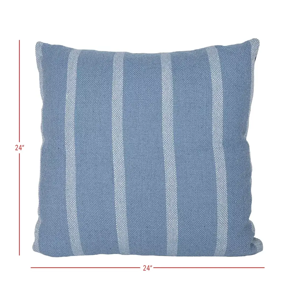24" X 24" Blue & Light Blue Striped Handwoven Large Indoor/ Outdoor Throw Pillow