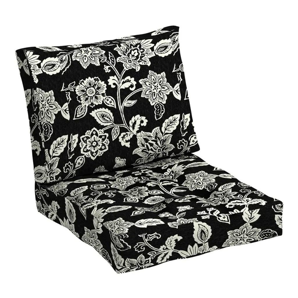 Give your outdoor setting a stylish classic upgrade when you add this indigo and cream indoor-outdoor deep seating pillow and cushion set. The set features a seat back and box seat cushion upholstered in a dazzling pattern. It's the perfect way to update your favorite deck or patio chair.Back Pillow Width: 27 inchesBack Pillow Height: 22 inchesSeat Cushion Width: 23 inchesSeat Cushion Depth: 25 inchesSeat Cushion Height: 5 inches