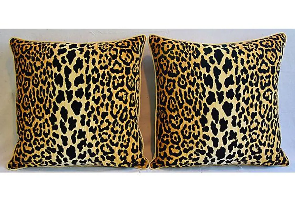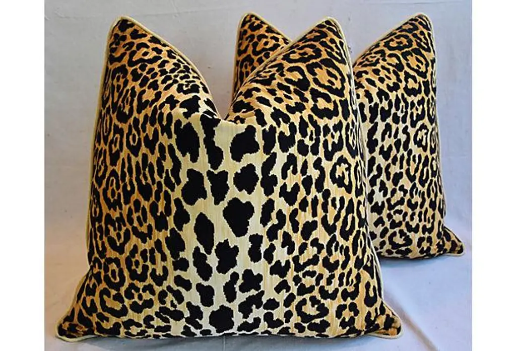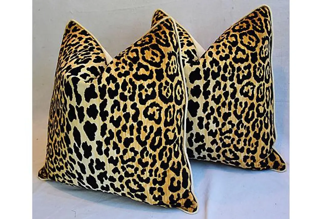 26" Custom Tailored Leopard Spot Safari Velvet Feather/down Pillows - A Pair