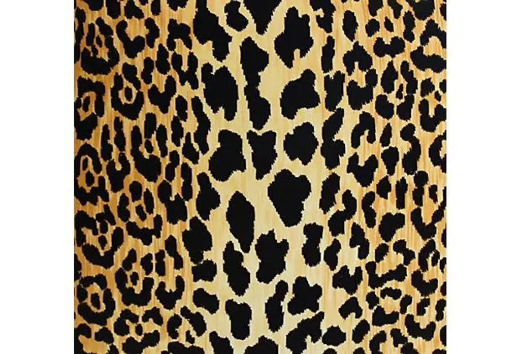 Pair of large 26" square custom-tailored pillows in a vintage/never used ultra-soft velvety cotton low-nap fabric depicting a safari leopard spot print. The pattern has been meticulously centered on each pillow. Pillow's backs are a new/never-used golden velvet fabric. Pillows are finished with a custom matching velvet cord trim, invisible zipper closures, and new plump generous goose down-and-feather inserts. Excellent new condition!! ***PLEASE NOTE: If you purchase more than one pillow or more than one pair of pillows you may initially be charged extra shipping costs at checkout. However, I always combine items into one box when possible and I will alert Chairish to refund any overage paid on shipping costs to you. Warm regards, Mike Seratt I SHIP OUT IMMEDIATELY, SO THE ESTIMATION YOU SEE FOR THE DELIVERY TIMELINE IS CHAIRISH'S OVERALL GENERAL TIMELINE, BUT I WILL GET THIS OUT THE NEXT DAY AND DELIVERY IS USUALLY 5-7 DAYS AT MOST