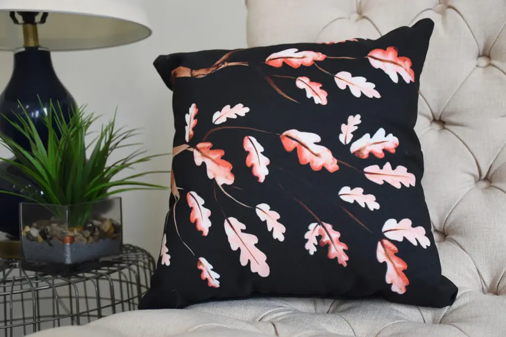 26" Wild Oak Branch Black Floral Print Decorative Throw Pillow