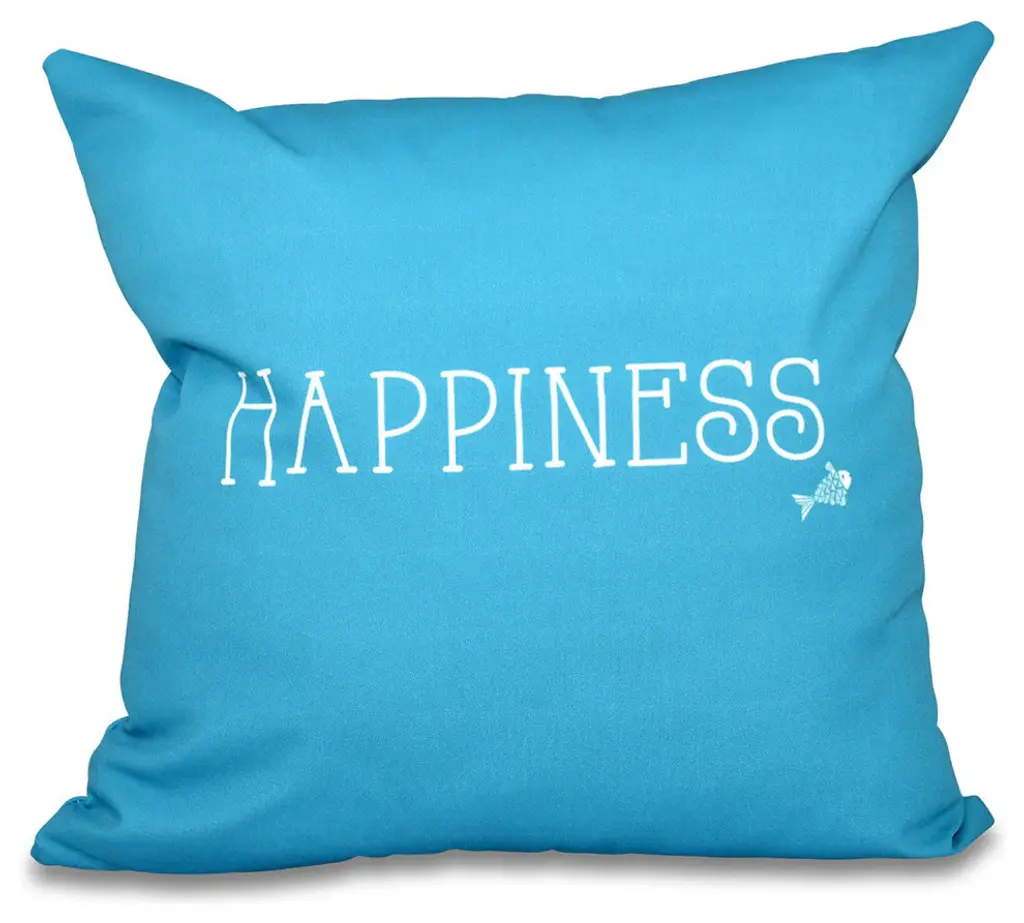 26"x26" Coastal Happiness, Word Print Pillow, Coral