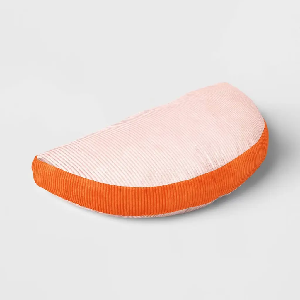 Refresh your room instantly with this Half Moon-Shaped Toss Throw Pillow from Room Essentials™. Made from 100% recycled polyester fabric shell with polyester filling, this novelty throw pillow feels soft while adding a plush feel to your loveseat, couch, chair, or bed. Featuring a corduroy construction, this decorative toss pillow brings an eye-catching flair to your room decor.Room Essentials™: Everyday Value
