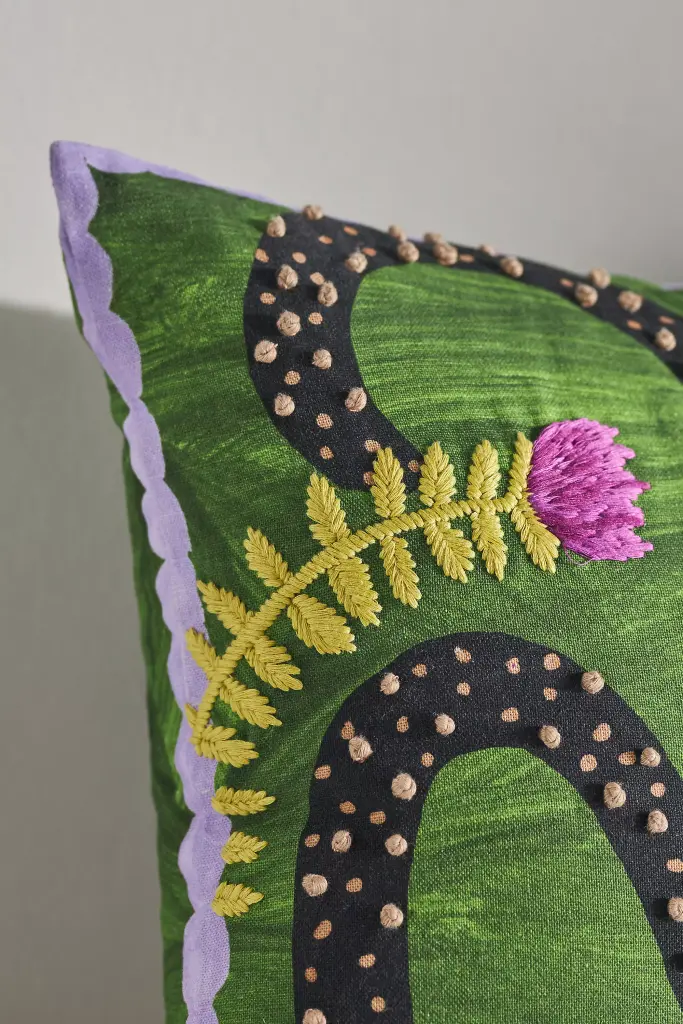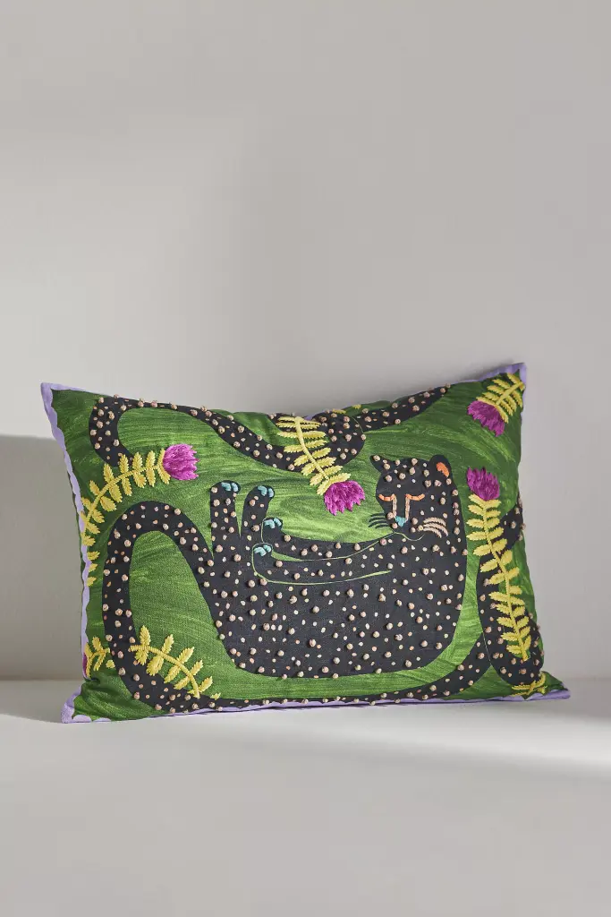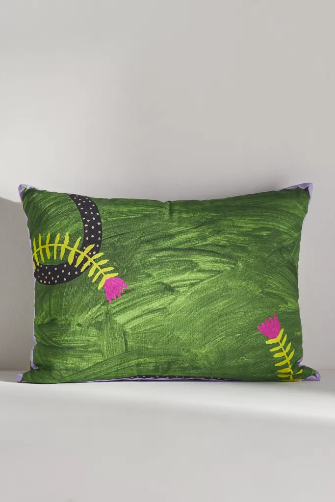 Transform any pillow into a dreamy oasis with this vibrant pillow adorned with dancing florals and whimsical creatures.