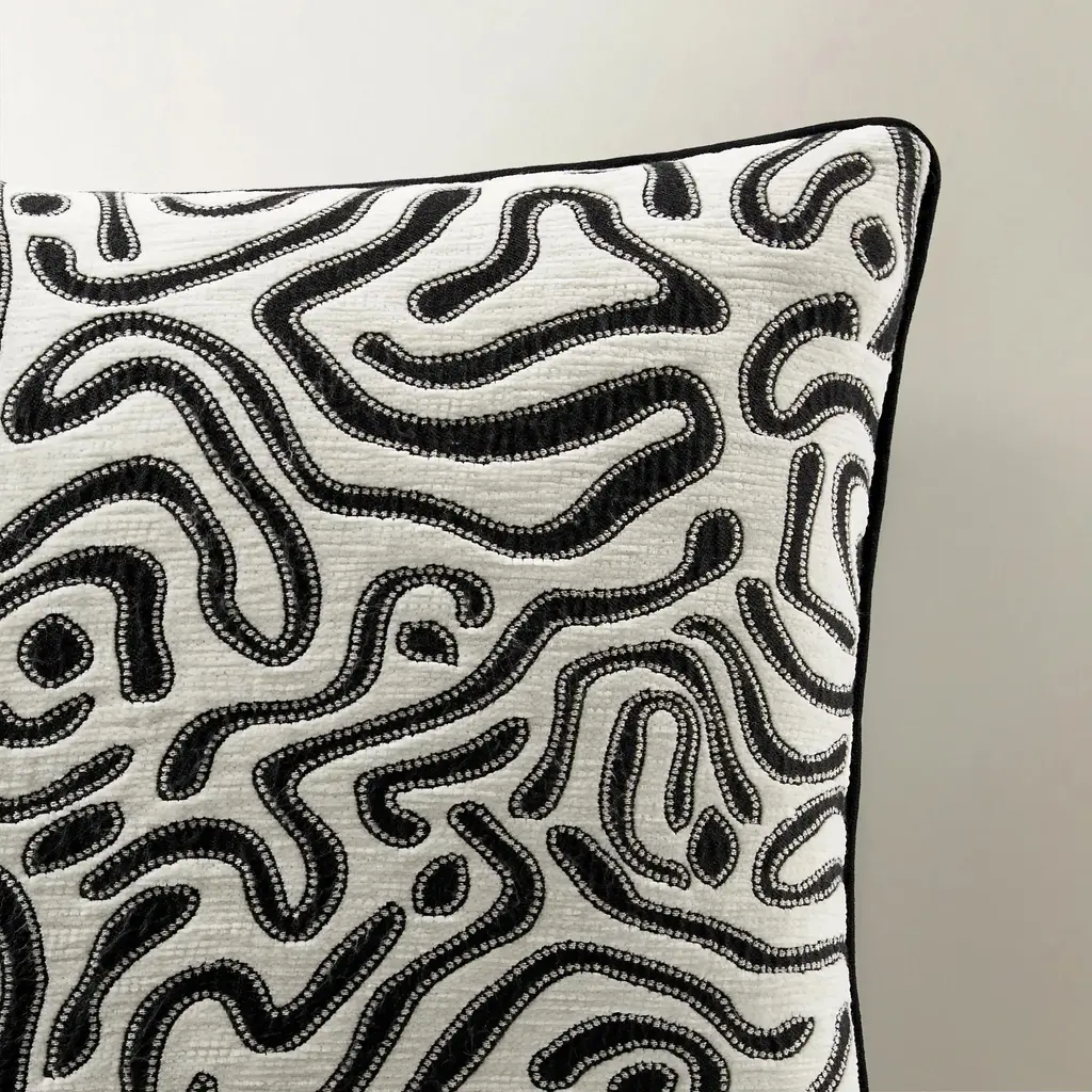 Bring artistic elegance to your space with our Abelia Pillow in ivory and black. Intricate stitch embroidery creates a sophisticated botanical pattern that transforms this accent piece into a textile artwork. The timeless ivory ground provides the perfect canvas for the intricate black embroidery work, creating a versatile accent that bridges both contemporary and classic décor styles.Z Gallerie Exclusive