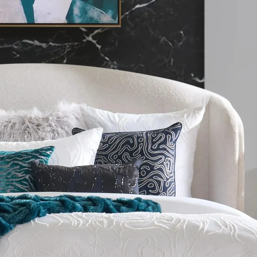 Bring artistic elegance to your space with our Abelia Pillow in navy and black. Intricate stitch embroidery creates a sophisticated botanical pattern that transforms this accent piece into a textile artwork. The timeless ivory ground provides the perfect canvas for the intricate black embroidery work, creating a versatile accent that bridges both contemporary and classic décor styles.Z Gallerie Exclusive