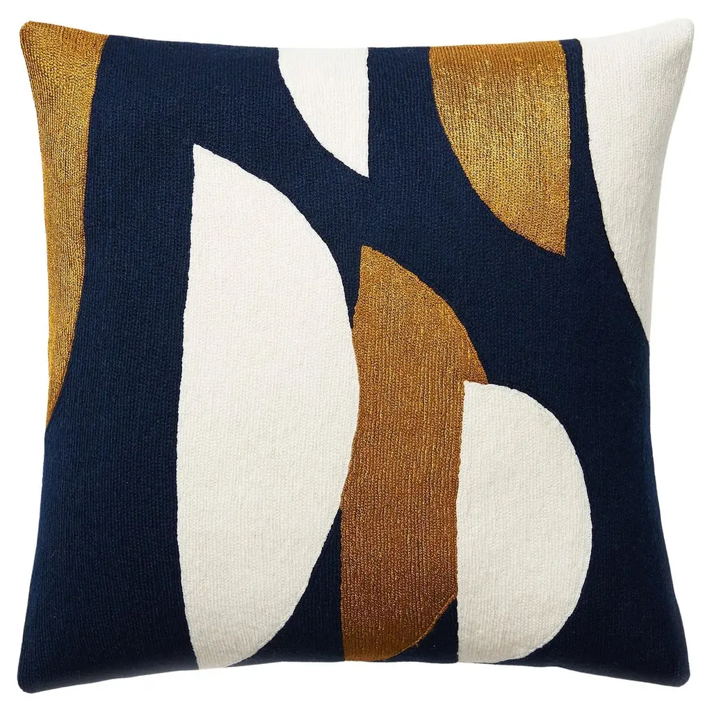 Abstract Decorative Throw Pillow - Ivory/dark Blue