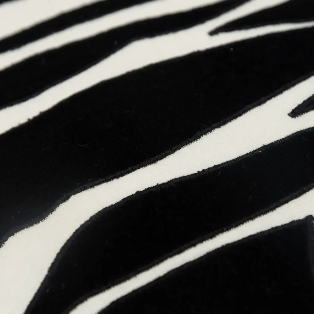 This chic accent pillow will create contemporary elegance in any ultramodern décor. Made from 100% premium cotton, this 20" x 20" knife-edged pillow boasts an abstract, ultra-modern appliqued design in soft cotton velvet. This pillow is nothing short of fabulous, inspired by modern craft and glamour. The satin-stitched edges of the impressionistic pattern are beautifully embroidered, providing a tactile, urbane feel. The coordinating solid back with a hidden zipper closure ensures that this accent pillow will look sleek from any angle. With the classic black and ivory color palette, this piece will add a touch of sophistication and drama to any room.