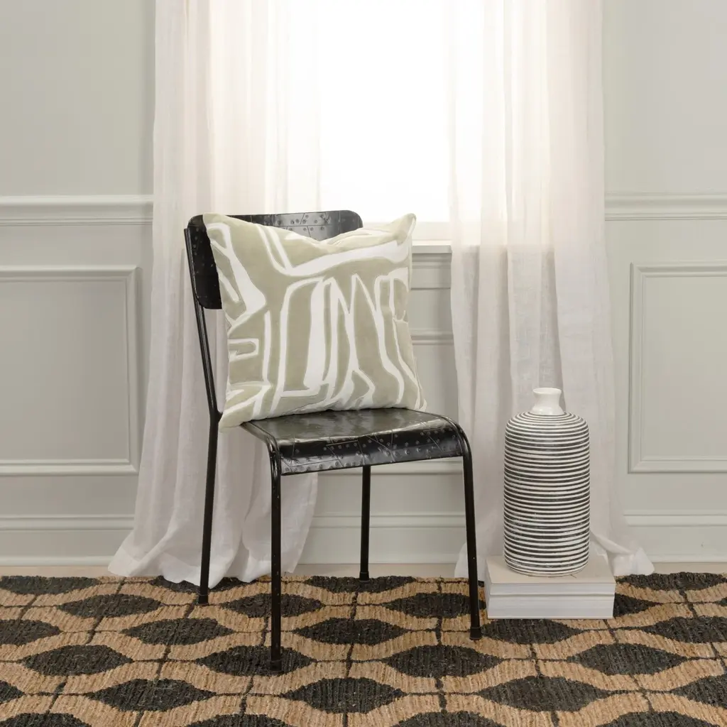 This chic accent pillow will create contemporary elegance in any ultramodern décor. Made from 100% premium cotton, this 20" x 20" knife-edged pillow boasts an abstract, ultra-modern appliqued design in soft cotton velvet. This pillow is nothing short of fabulous, inspired by modern craft and glamour. The satin-stitched edges of the impressionistic pattern are beautifully embroidered, providing a tactile, urbane feel. The coordinating solid back with a hidden zipper closure ensures that this accent pillow will look sleek from any angle. With the classic black and ivory color palette, this piece will add a touch of sophistication and drama to any room.