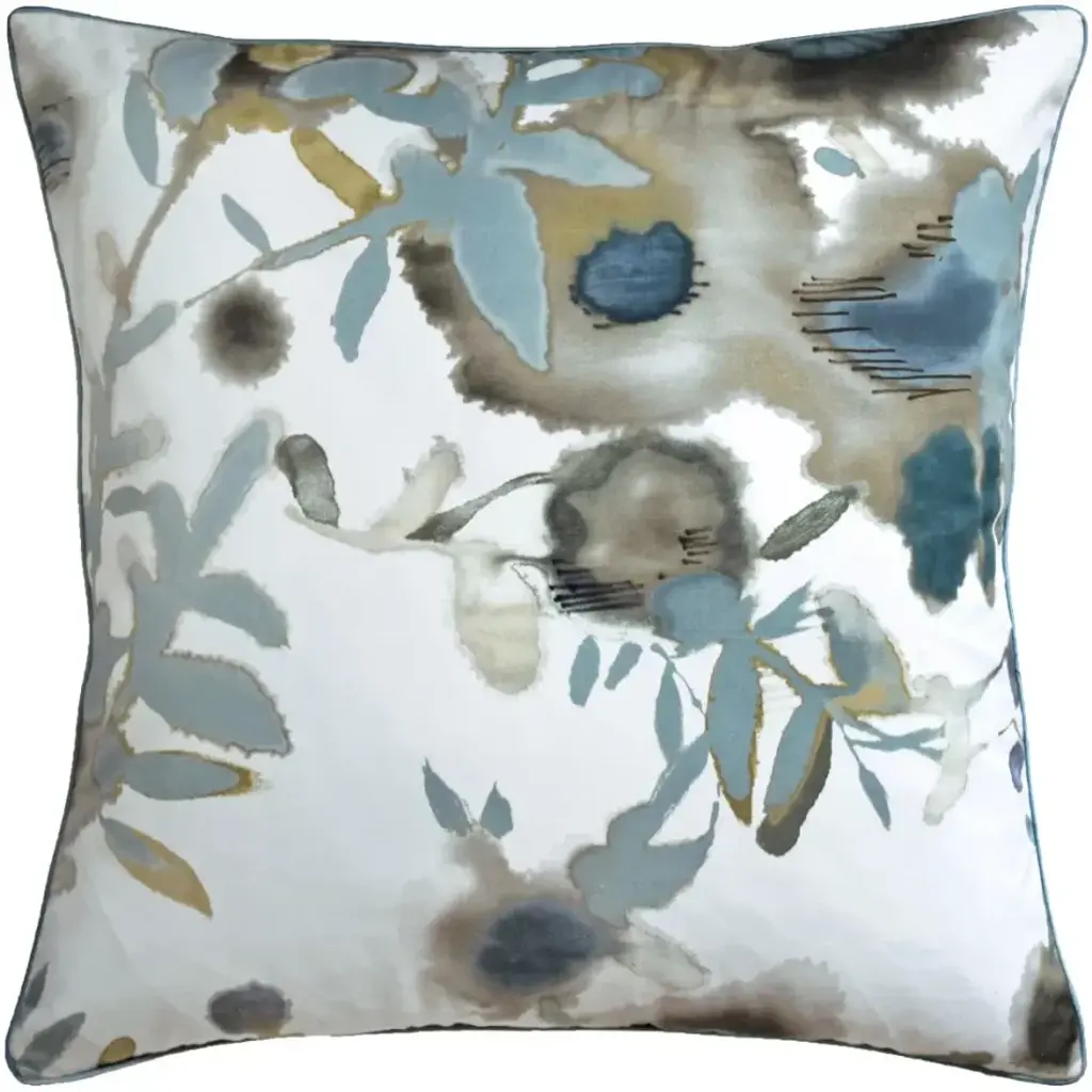 Abstract Floral Floral Print Outdoor Pillow, Teal, 18"x18"