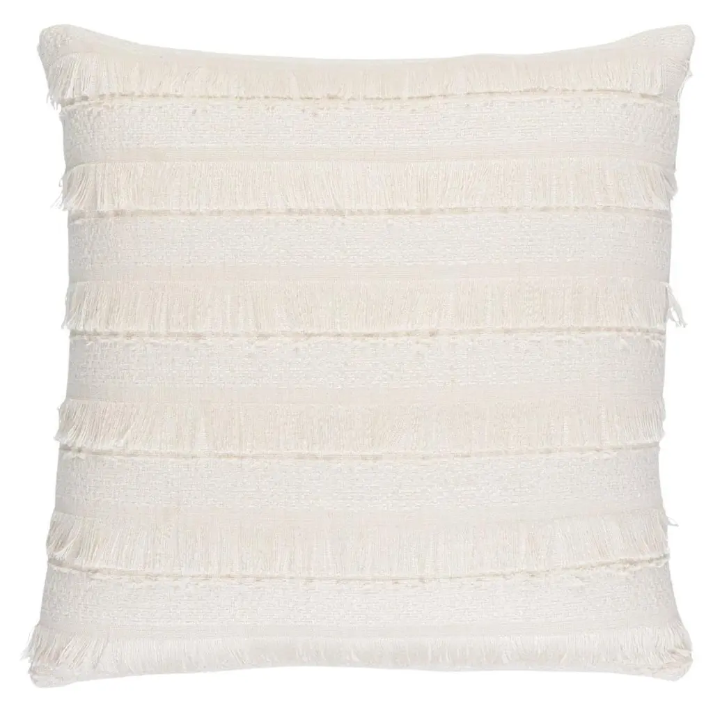 This pillow features Acadia with a knife edge finish. A horizontal fringed stripe, this pattern derives from a textile in our archives. Beautifully woven with silky mélange yarn, it has an artisanal look and multi-textural appeal. Pillow includes a feather/down fill insert and hidden zipper closure.