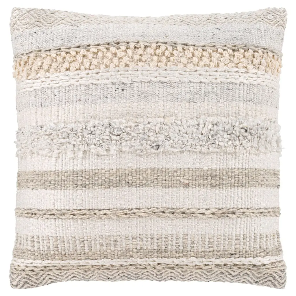 Accent Pillow-Beige Textured Stripes 22x22 | Square By Surya
