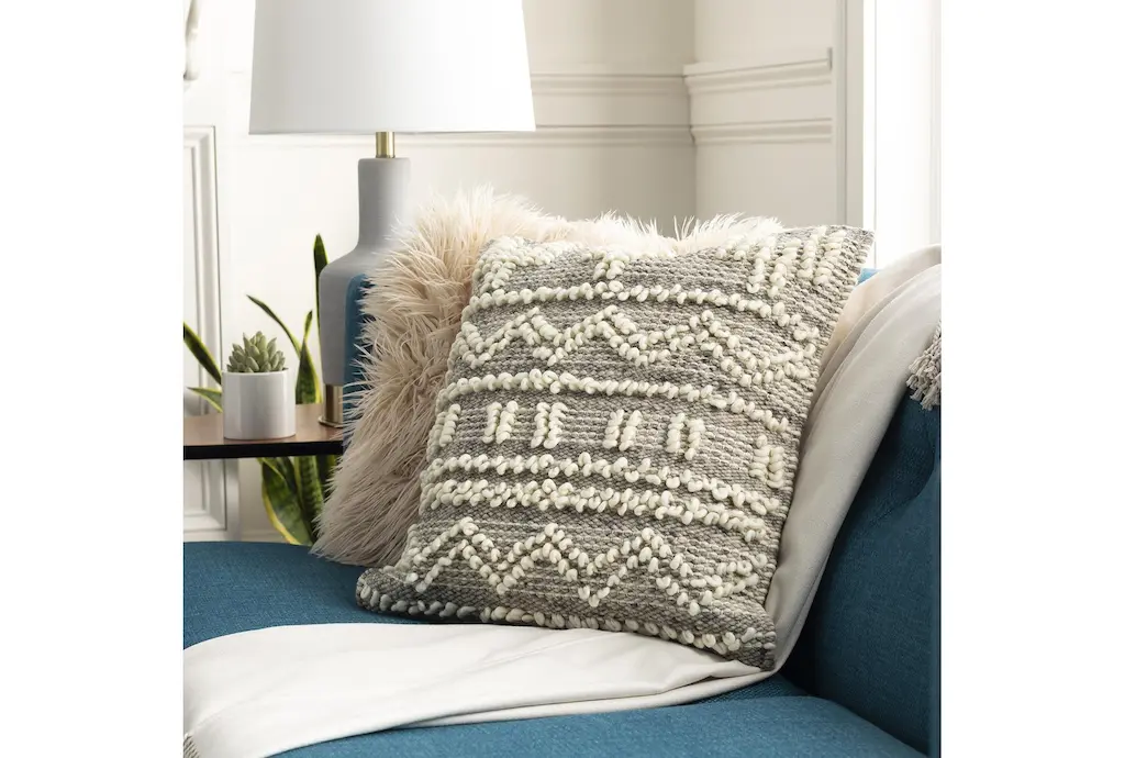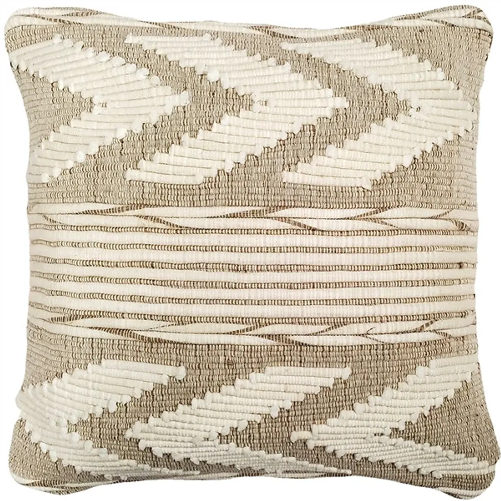 Enhance your living spaces with the Accent Pillow-Cream Wool Textured Stripes. This modern pillow brings a touch of sophistication and comfort to any room. Its square, 18x18 design in multicolor wool and cotton blends seamlessly with various decor styles, making it a versatile addition to your home.