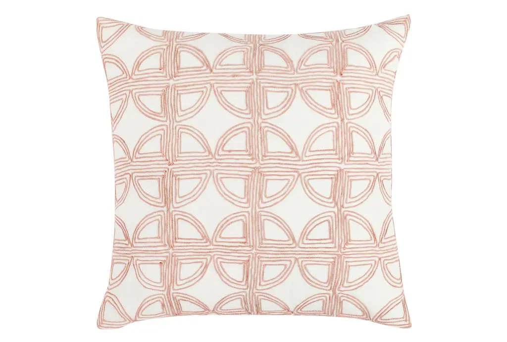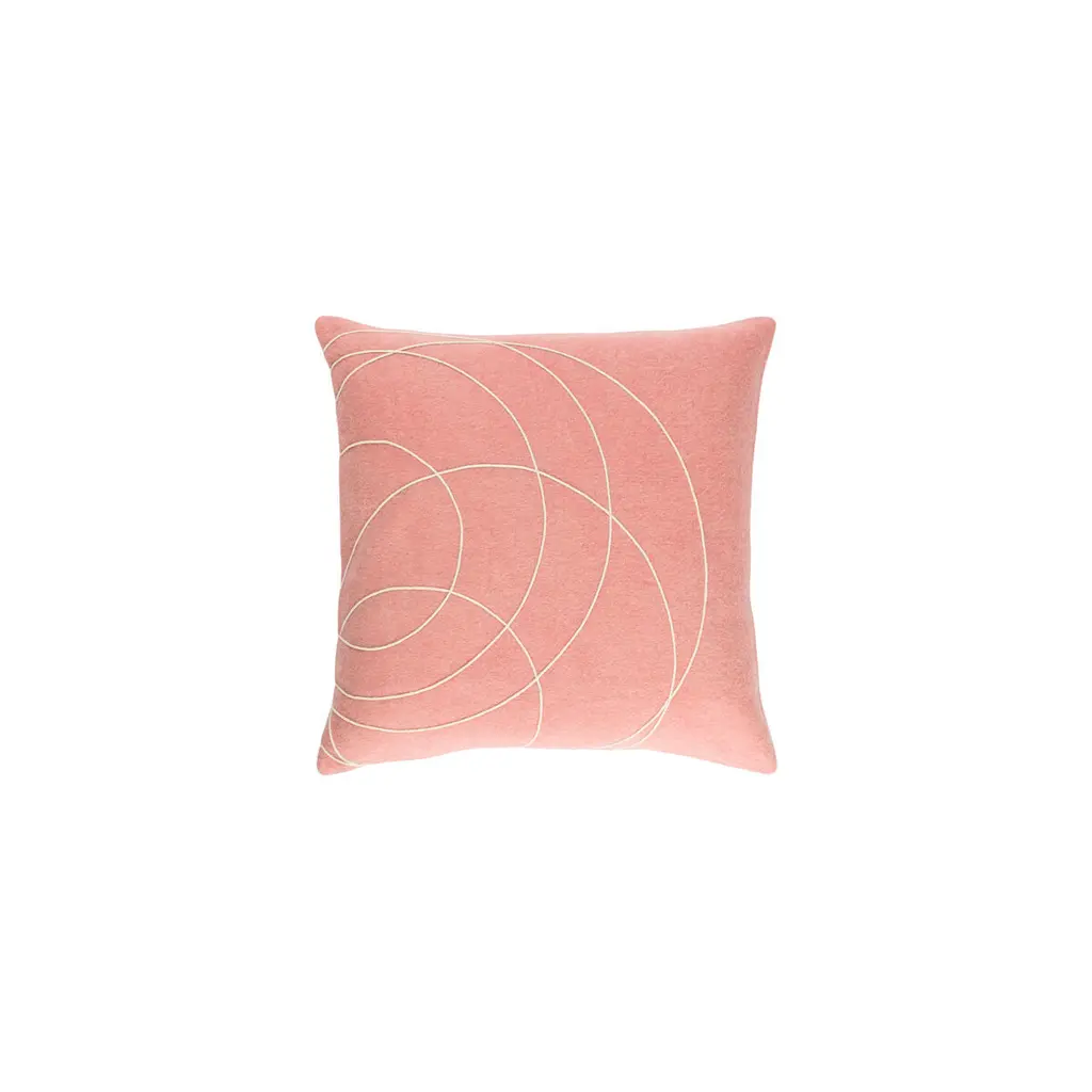 Enhance your living space with the contemporary charm of the Accent Pillow-Fabric Wool Felt Circles Mauve 18X18. This decorative pillow from Surya features a square shape and a soft mauve color accented by cream circles, adding a modern touch to any room.