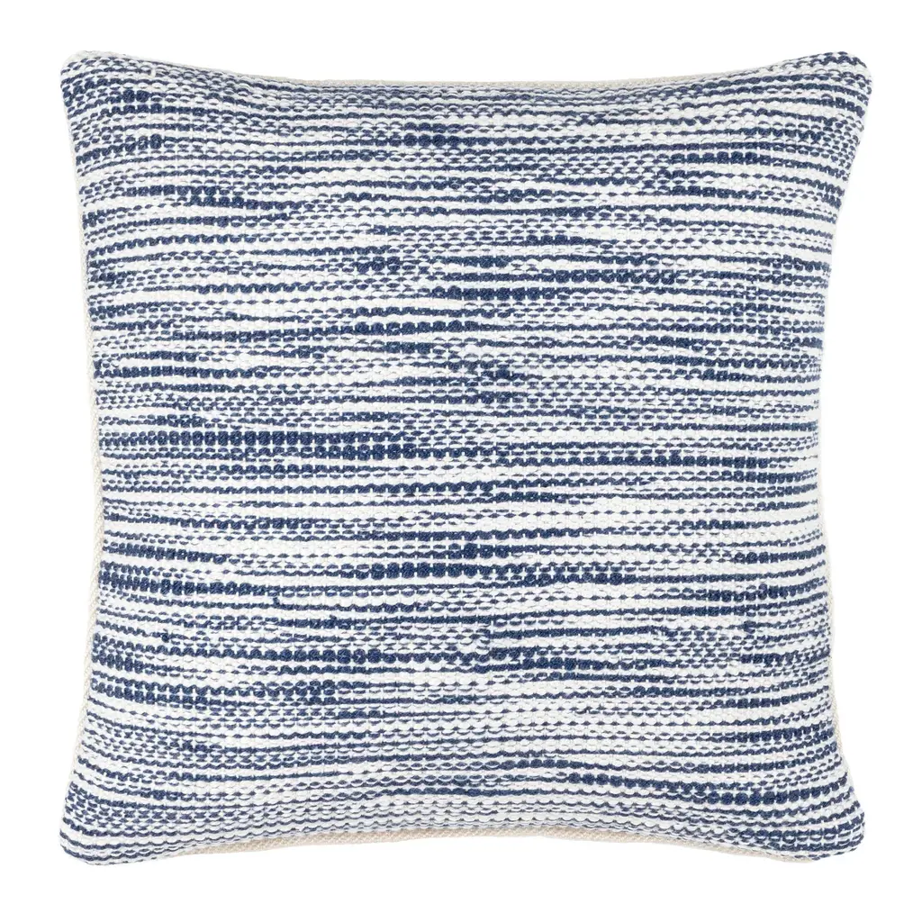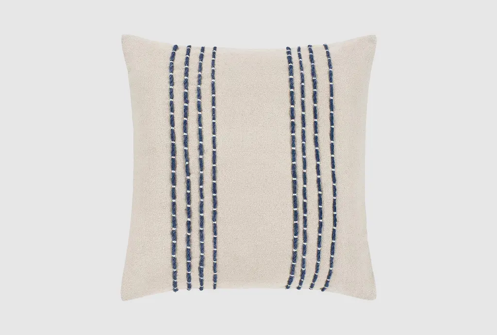 Enhance the cozy ambiance of your living room or nursery with this stylish accent pillow, boasting a charming ivory and navy embroidered stripe design that exudes casual elegance. Crafted from high-quality fabric, this 20X20 pillow is the perfect choice for anyone seeking a comfortable and chic addition to their décor.