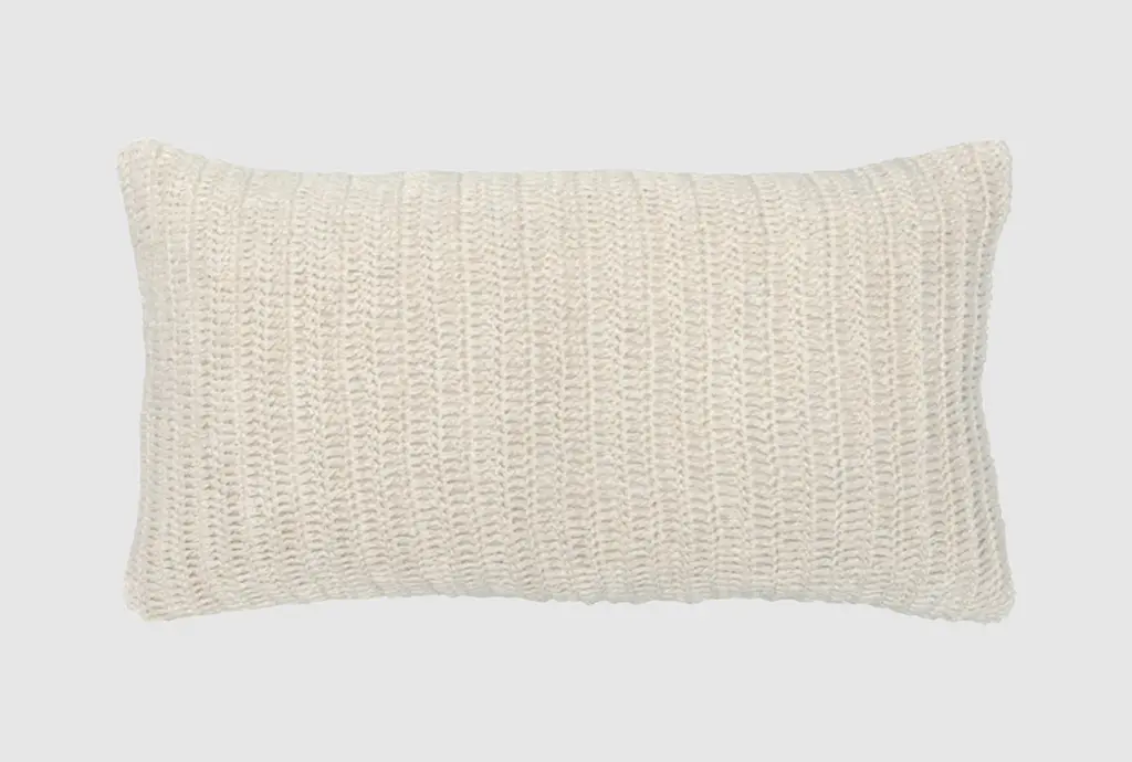 Accent Pillow Ivory Beige Knit Linen Fabric Solid 14x26 | Rectangle