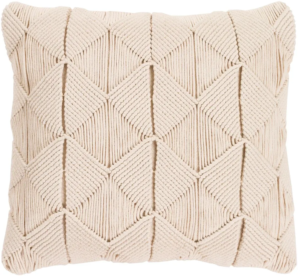 Accent Pillow-Macrame Fabric Diamonds Cream 18x18 | Crochet By Surya
