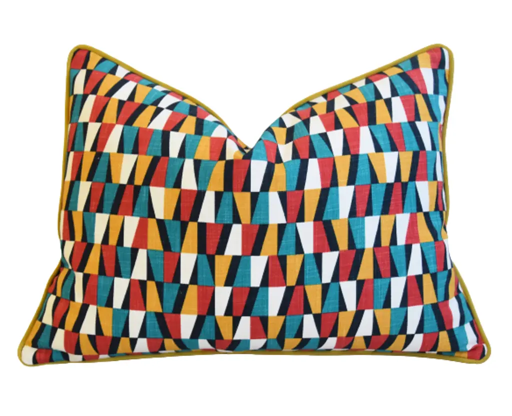Accent Pillow- Seraphina Woven Fabric Geo Bright Multi 22x22 | Abstract By Surya