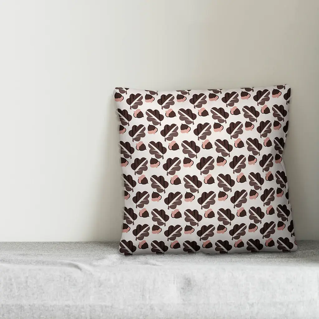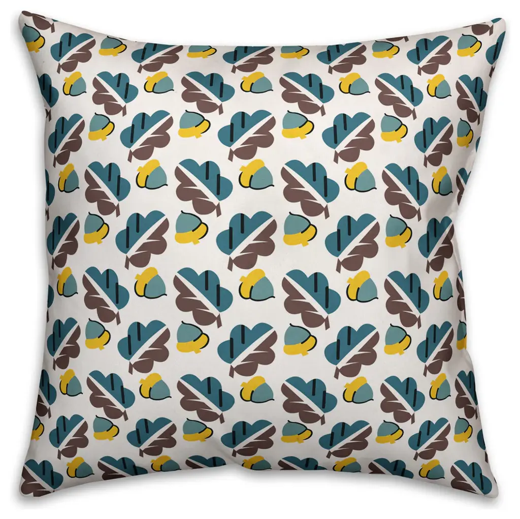 Acorns And Leaves Pattern, Brown Outdoor Throw Pillow, 16"x16"