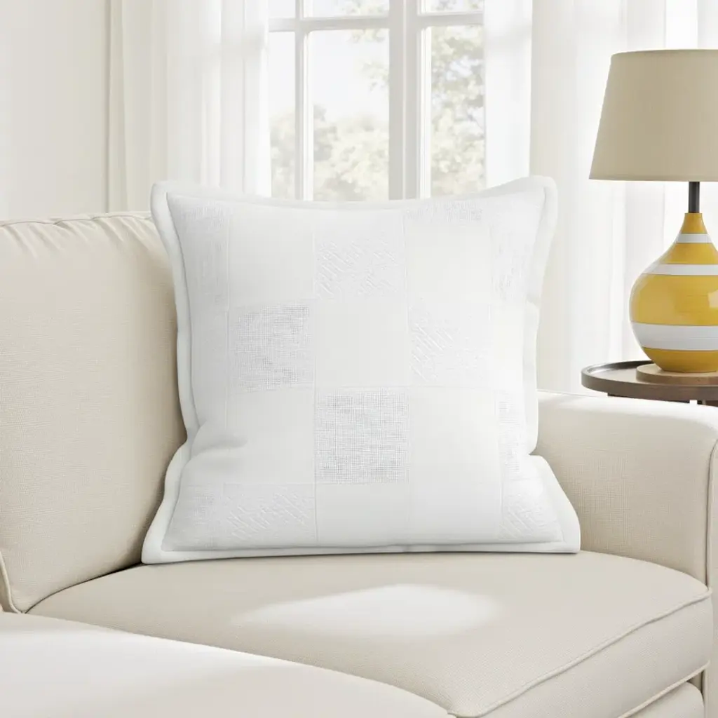 Vandemere surrounds you in the soft and nostalgic comfort of patchwork, reimagined in modern luxury. Pieced by hand with subtle textures and tones, these pillows and throws easily elevate your look.