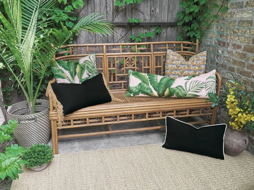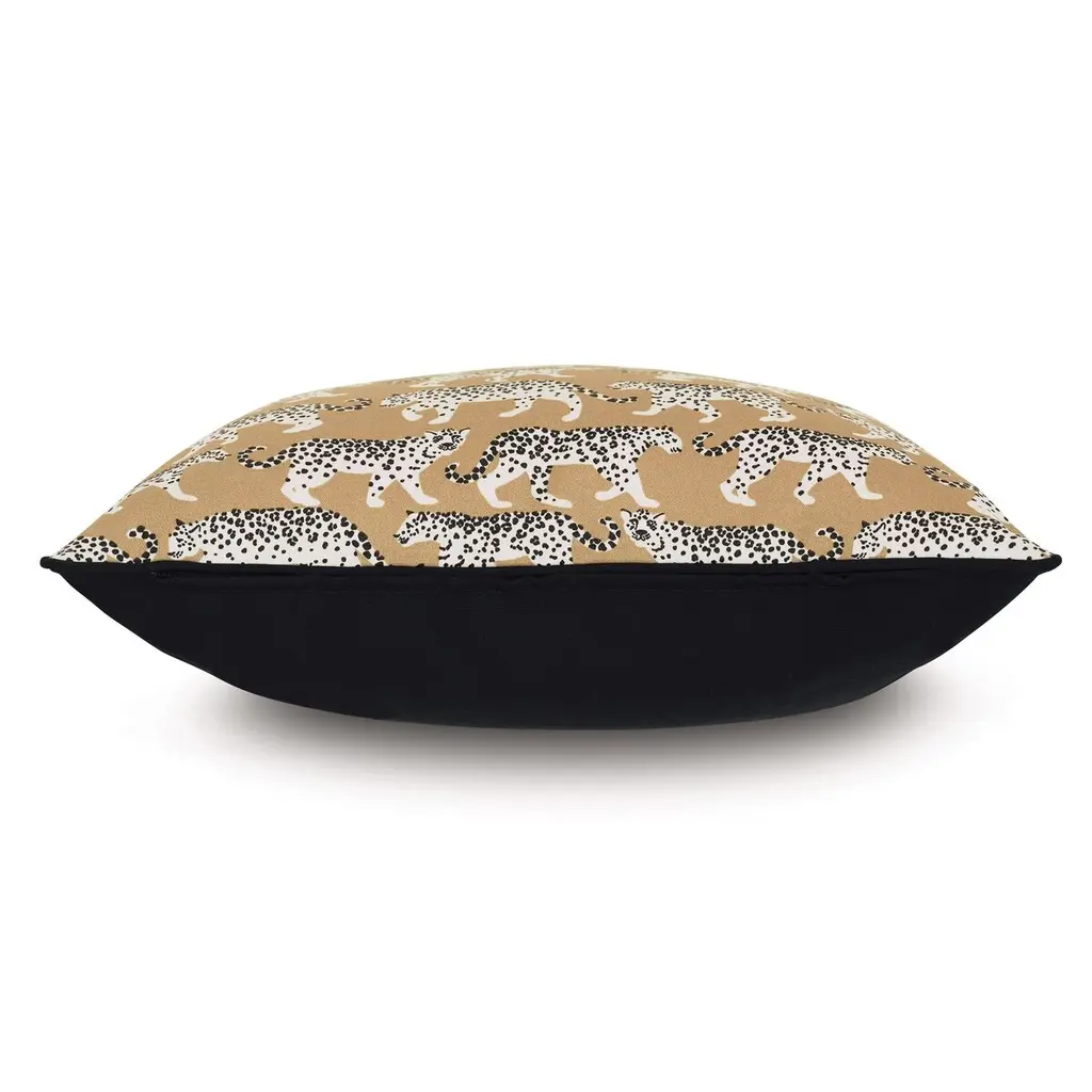 Designed by us and available only at One Kings Lane: Adorned with leopards on the prowl, this pillow lets you indulge your wild side. Made with performance fabric designed to withstand the elements, it's ideal for your porch, patio, or sunroom. Solid back. Hidden zipper closure. Insert included.