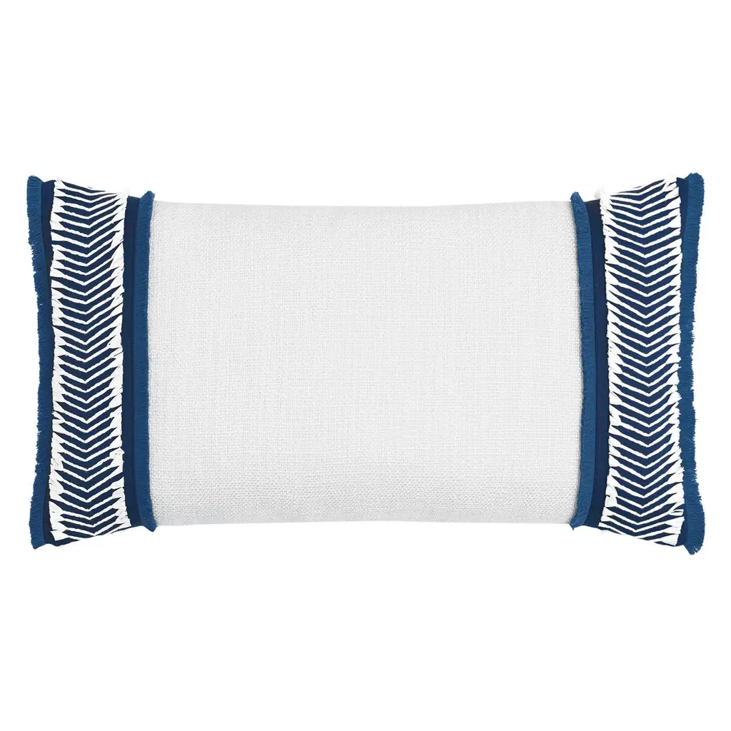 This pillow has textured cotton fabric that is designed to give a solid textured look providing durability and softness. The design is hand embroidered using unique thread that provides dimension and nice hand feel. Embroidery is applied by hand making each pillow a true one-of-a-kind piece. Every pillow is hand cut and sewn allowing for slight variation from piece to piece.