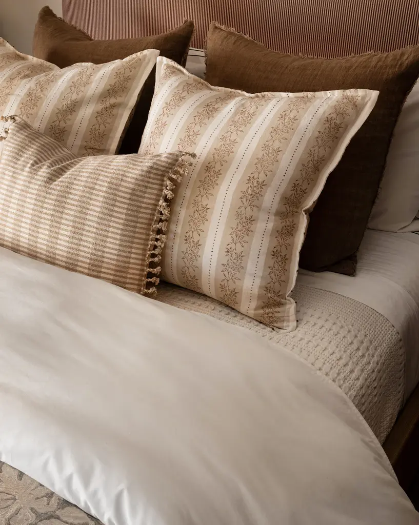 With subtle fringe, the Adriana Pillow is one-toned in a neutral hue with intricate details that boast of its craftsmanship. Made from linen, the pillow is textural and inviting, lending itself to seamless styling with other textiles.