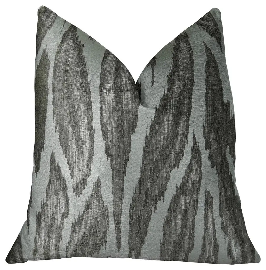 Exemplifying endless elements of extravagant style and upbeat design, this is the pillow youve been daydreaming of! Sure to sparkle in any space. Create instant charm to your home dcor with this plutus agate river gray silver ivory handmade luxury pillow. The fabric is a blend of Viscose, Cotton, Polyester and Linen.Pillows are Handmade in USA• Color: Gray Silver Ivory• Double Sided pillow• Invisible zipper enclosure for a tailored look• All seams are over-locked and stitched for a professional finish• Pattern placement may vary slightly• Pillow measurements are seam to seam from the inside• Pillows include • Made in USA• Hypoallergenic Down Alternative Polyfill Insert• Dry Clean recommended• Fabric Content: 63%Viscose/19%Cotton/14%Polyester/4%Linen• Pattern: Motif
