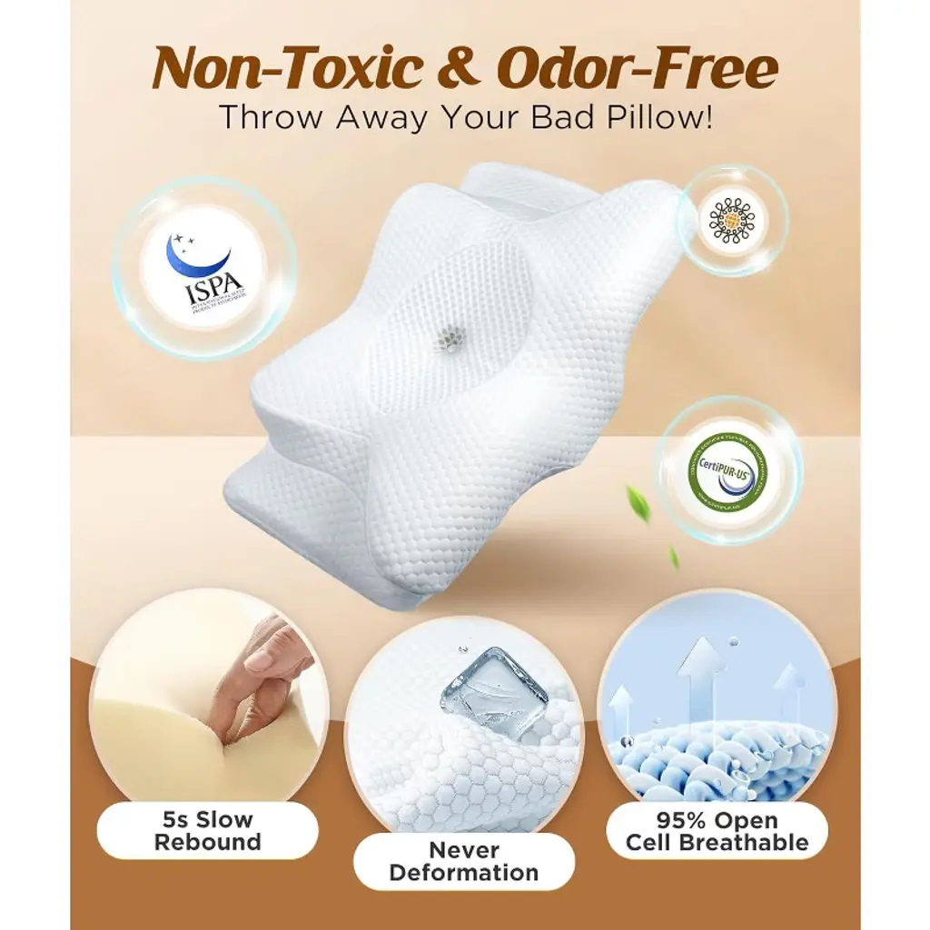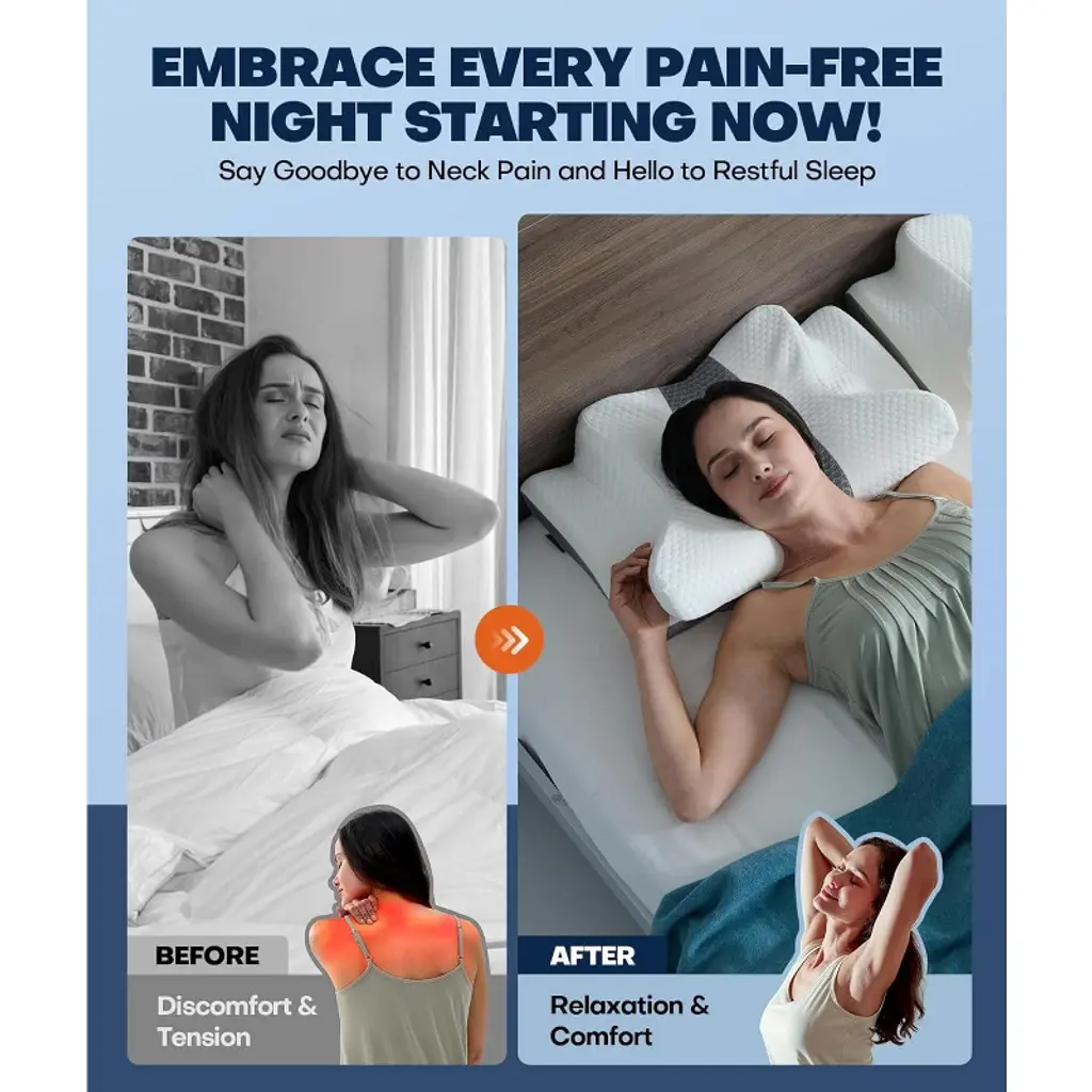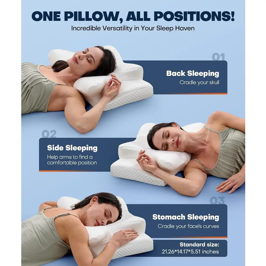 NIGHTLY RELIEF, MORNING REFRESH: Revolutionize your sleep with Emircey versatile sleep neck pillow. Engineered with an innovative design featuring a unique hollow and butterfly-patented contour, Emircey ergonomic pillow revolutionizes your sleep by mimicking the human anatomy. This contour molds airtight to your head's shape, naturally aligning your entire body spine and reducing cervical stress to the maximum. And it also offers ample space for your shoulders without feeling cramped or constricted. With an extended armrest area, you can position your hands freely. Your gateway to a painless slumber awaits – transform your nights. ONE PILLOW, ALL POSITIONS: With so many memory foam pillows made specifically for side sleepers, back sleepers, and more, how can the Emircey cervical pillow be just right for everyone? It comes down to our perfect orthopedic pillow "recipe" based on over 50 years of experience and helping millions find their ideal fit. Simply flip your contour pillow 180 degrees for varied contour heights (3.5'' & 3.1''). The high profile is best for larger body frames and side sleepers, while the low profile is optimal for front, back, and other sleeper types. Plus, it's incredibly sculptable, making it easy to shape and adjust right under your head and neck for the best support in any position. OMIGOSH. HOT SLEEPERS REJOICE: Waking up covered in sweat? Fear not. All of that is gone with the EmirceyPillow 2.0s cooling technology. Our outer cover's fibers have a temperature-neutral touch that is never too cool or too warm. It is treated with our plant-based Move+Cool treatment that maximizes the cover's natural wicking, heat dissipation and evaporation qualities. With a 95% permeable cell rate in the memory foam inner fill, our memory foam pillow enables twice the airflow of conventional foam fills. Emircey cervical neck pillow is much MORE than a cooling pillow—it's a complete thermal regulation system inside and out, designed for unmatched comfort. Just right, all night. SUSTAINABLY MADE PILLOWS YOU'LL LOVE: For us, while making the best pillow for neck pain was a key goal, minimizing our impact on the environment was not negotiable. From day one, Emircey neck support pillow had to be a sustainable choice. Our Omigosh-soft outer cover is crafted from BioPreferred polyester fiber, sourced sustainably from renewable wood pulp. Our memory foam is a CertiPUR-US Certified Biobased Product and the memory foam components can be recycled after use, further reducing environmental impact. While some side-sleeper pillows are made from off-gassing materials and VOCs, the Emircey neck pain pillow is a safe, green, sustainable choice. HASSLE-FREE PURCHASE EXPERIENCE: If you have any inquiries about our neck pillows for pain relief sleeping, please feel free to contact our customer service. The right memory foam neck pillow can relieve neck pain, improve overall sleep quality and encourage you to spend more time in bed. It's a good gift for dad, mom, fathers, mothers, girlfriends, boyfriends, husbands, wife & colleagues, birthdays Christmas gifts. Being pain-free is truly priceless. Buy Emircey side sleeper pillows for adults, Experience the bliss of pain-free sleeping. HASSLE-FREE PURCHASE EXPERIENCE: If you have any inquiries about our neck pillows for pain relief sleeping, please feel free to contact our customer service. How much difference can a great neck support pillow make? The right memory foam neck pillow can relieve neck pain, improve overall sleep quality and encourage you to spend more time in bed. It's a good gift for dad, mom, fathers, mothers, girlfriends, boyfriends, husbands, wife & colleagues, birthdays Christmas gifts. Being pain-free is truly priceless. Buy Emircey side sleeper pillows for adults, Experience the bliss of pain-free sleeping.