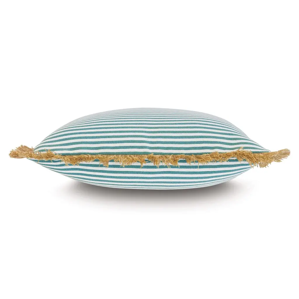 Ahoy 20x20 Outdoor Fringe Pillow, Mint/tan