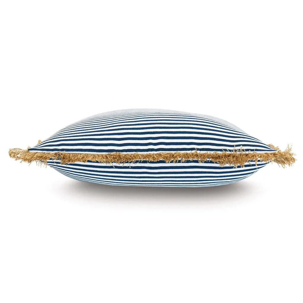 Ahoy 20x20 Outdoor Fringe Pillow, Navy/tan