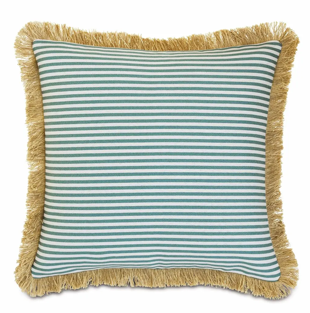 Designed by us and available only at One Kings Lane: With its tailored stripes and flirty fringe, this outdoor pillow is certain to bring both comfort and flair to your porch, patio, or sunroom. Insert included.