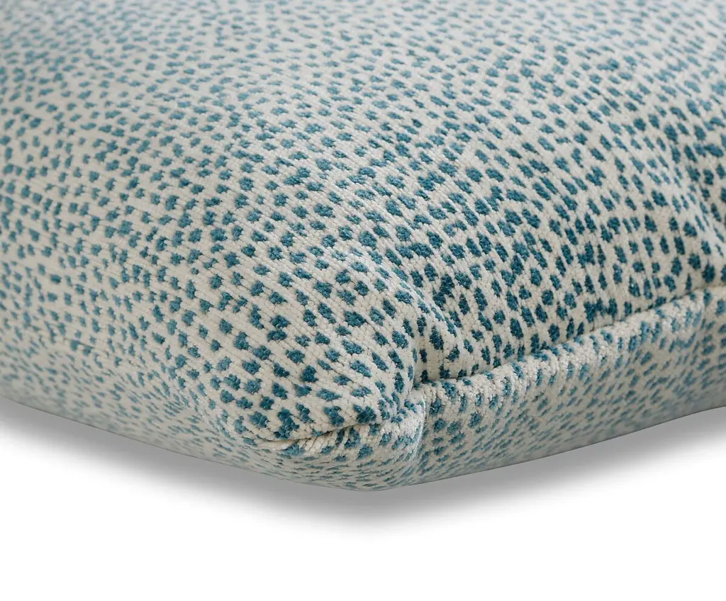 Designed by us and available only at One Kings Lane: A stylish accent with great texture, this plush pillow is crafted with a lively spotted design in teal and ivory. Insert included.