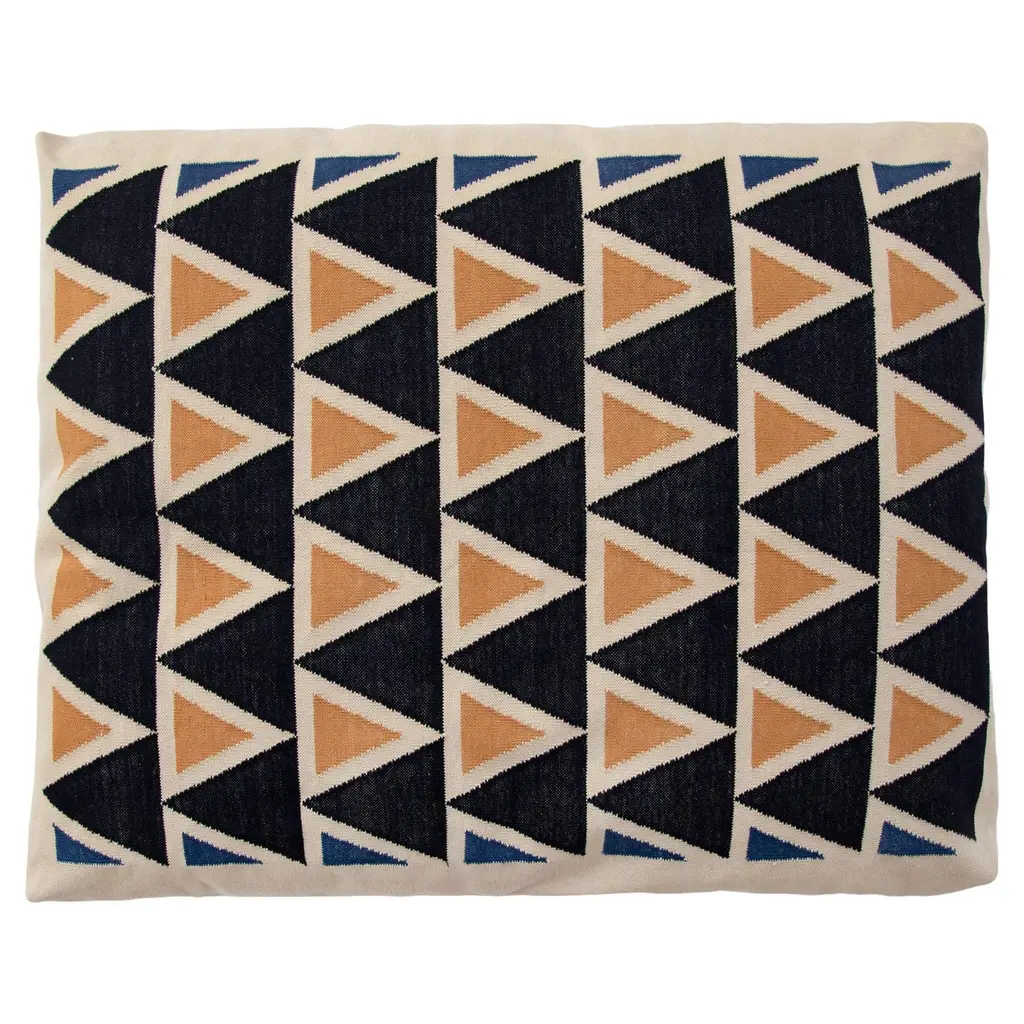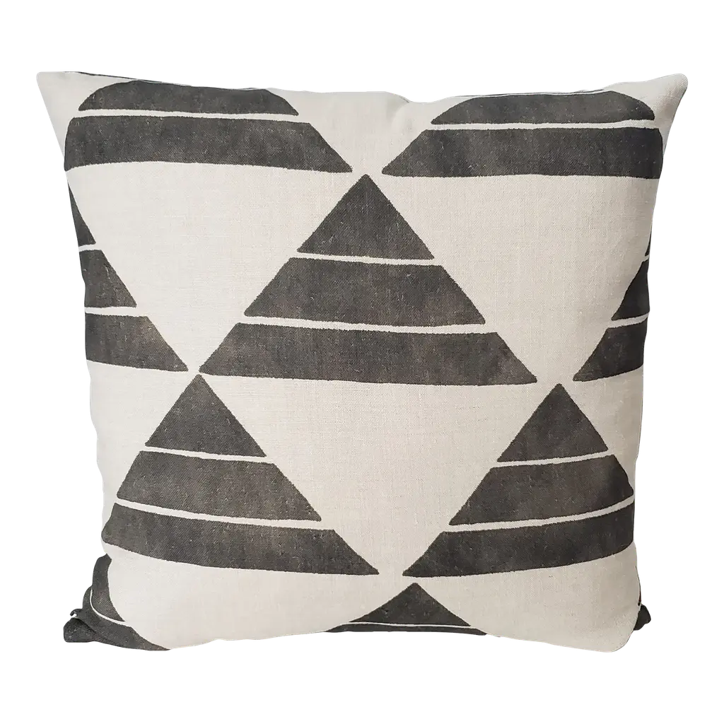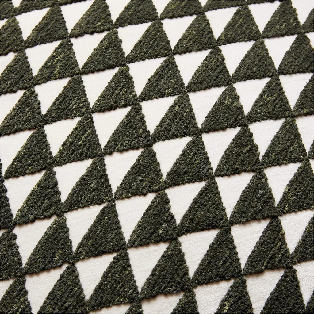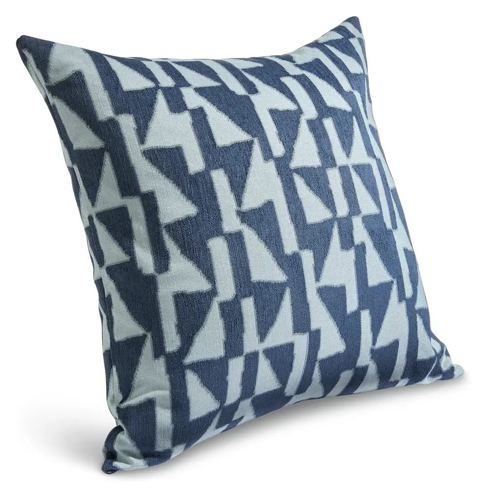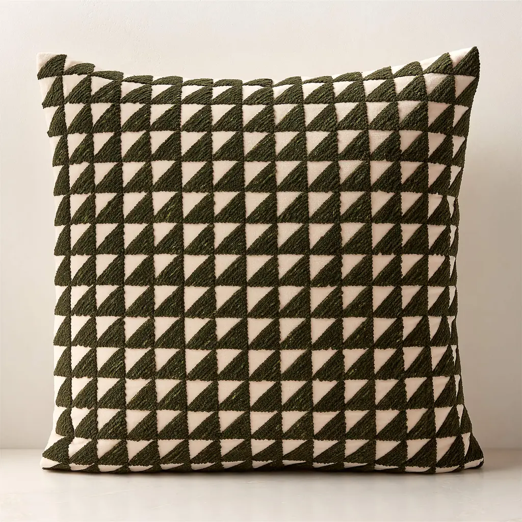 A backdrop of rich warm white velvet fabric highlights a captivating geometric design. Stitched in dark green chenille embroidery, the pattern adorns the front while the smooth, unadorned velvet continues to the back. A hidden zipper ensures a neat finish. Looks especially bold when paired with the smaller Alene throw pillow. CB2 pillows include a pillow insert in your choice of feather down or down alternative. CB2 exclusive.