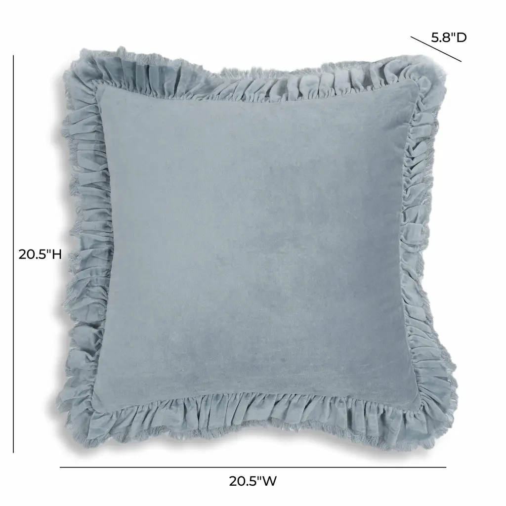 The Alessia Pillow Collection offers a perfect blend of elegance and texture, available in distressed pink, blue, and beige velvet with rippled edging for a touch of sophistication. For a playful twist, choose the Navy or Taupe striped pillows, each adorned with a bold ruffle in matching stripes. Each pillow comes pre-filled, ready to bring a cozy, stylish accent to your space.