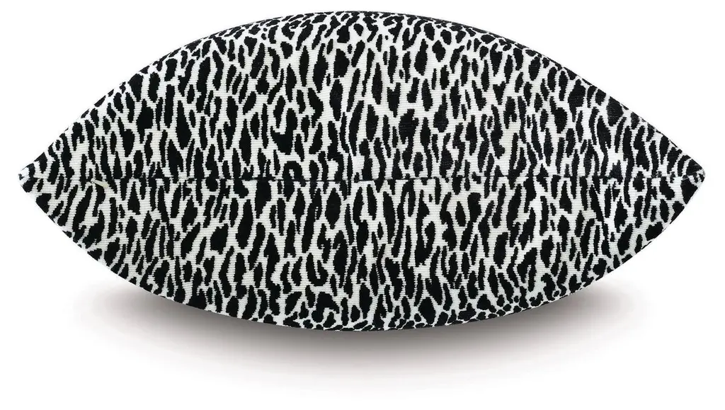 Exclusive to One Kings Lane: Woven in black and white, this animal-print pillow is the epitome of glamour. The feather fill ensures luxe loftiness. Zipper closure.