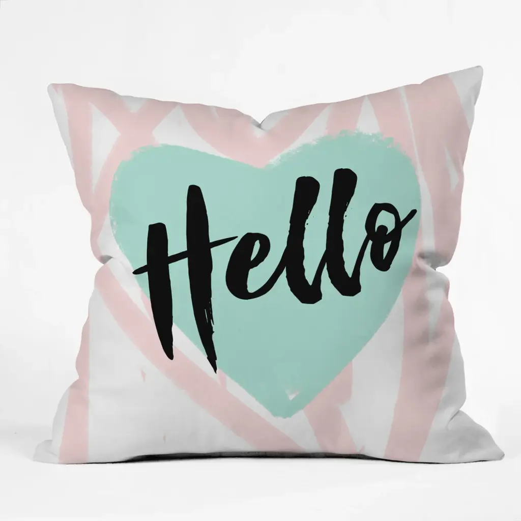 Allyson Johnson Hello Heart Mint Outdoor Throw Pillow, 18"x18"