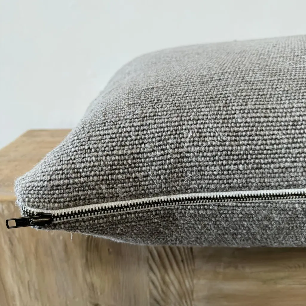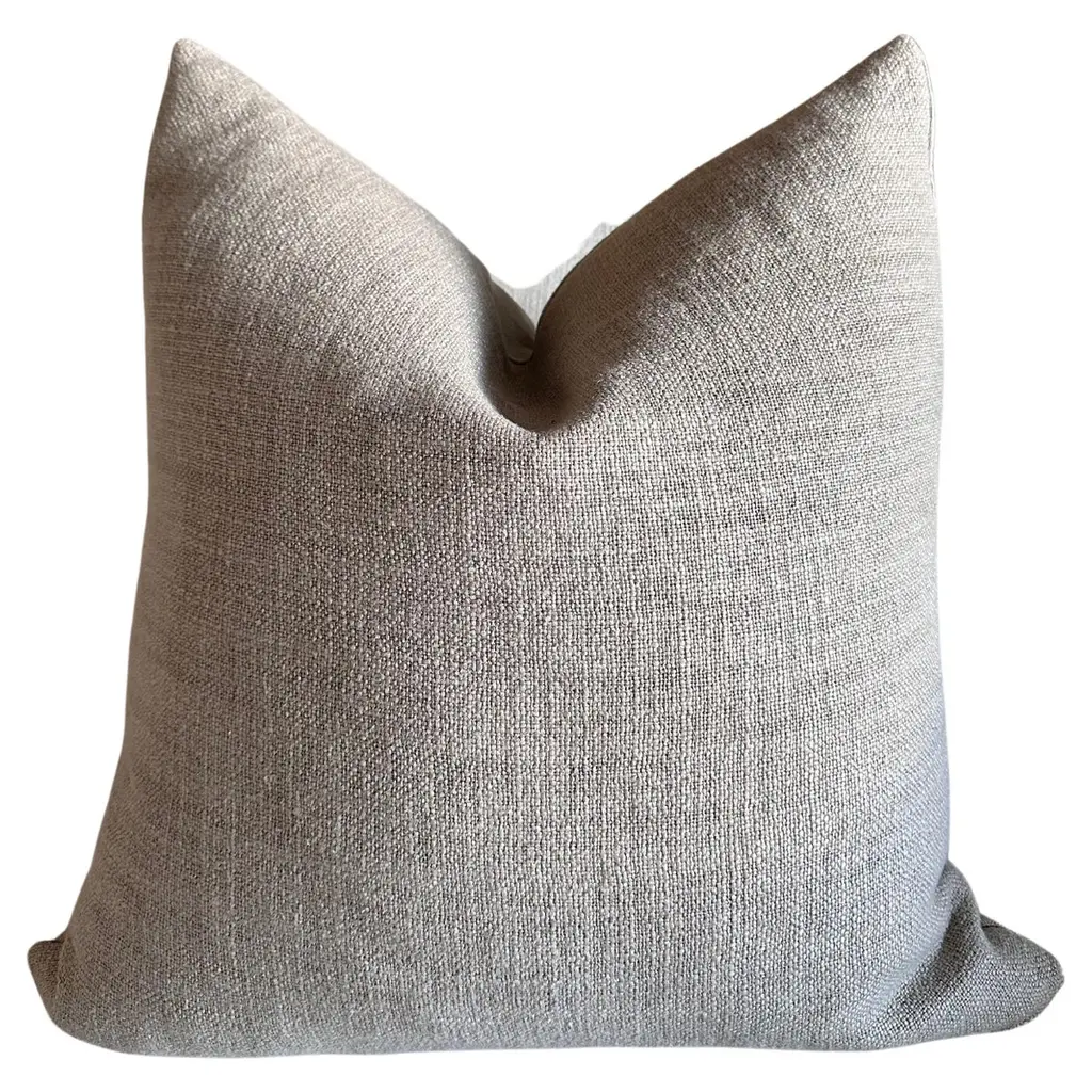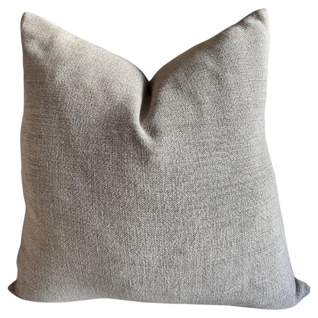 Our latest collection the Ellen Stonewashed LinenConstructed of a heavy woven linen, at 40.3 oz per yardPigment dyed, sewn with an antique brass zipper, and overlocked edge.Possibly our most coveted linen collection ever!Size: 22" x 22"Color: Flax 5769 (a dark natural/gray)Custom sizes availableIncludes a down feather insert.Care: Dry cleaning recommended.