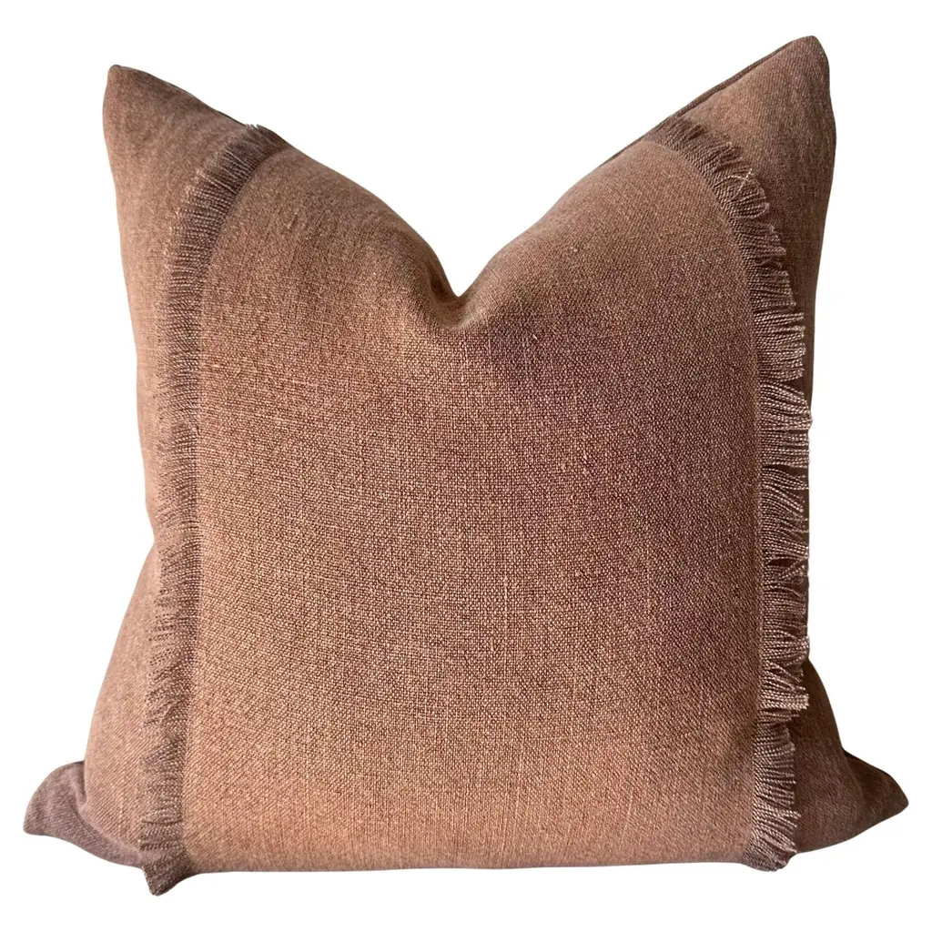 Collection the Alora Stonewashed Linen Constructed of a heavy woven linen, at 40.3 oz per yard. Pigment dyed, sewn with an antique brass zipper, and overlocked edge. Possibly our most coveted linen collection ever! Size: 22x22 / includes a down feather insert. Color: Havane 5768 A beautiful neutral tone with rust brown tones, reminiscent of an old teracotta tile. Includes a down feather insert. Care: Dry cleaning recommended.
