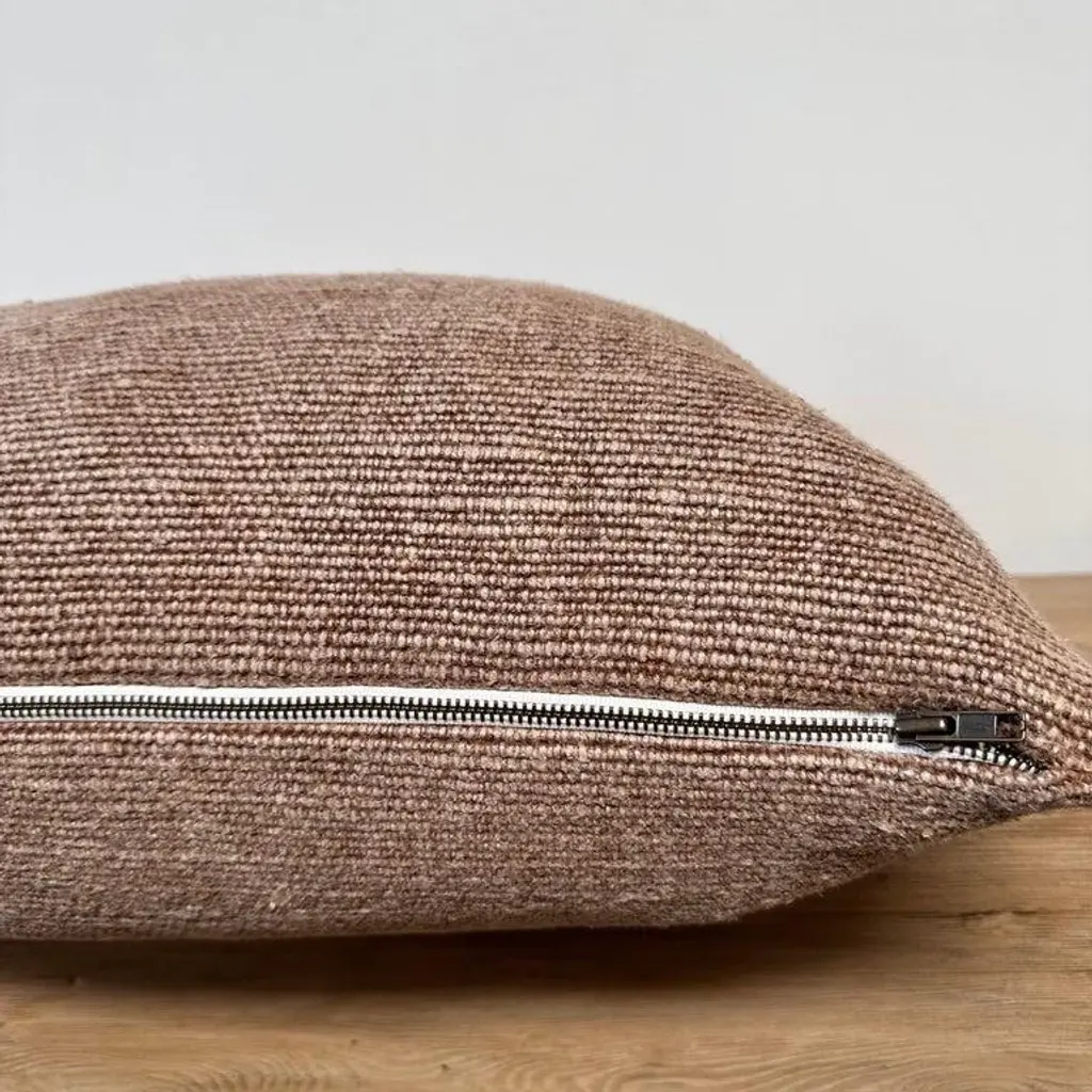 Alora Heavy Woven Textured Linen Pillow In Havane